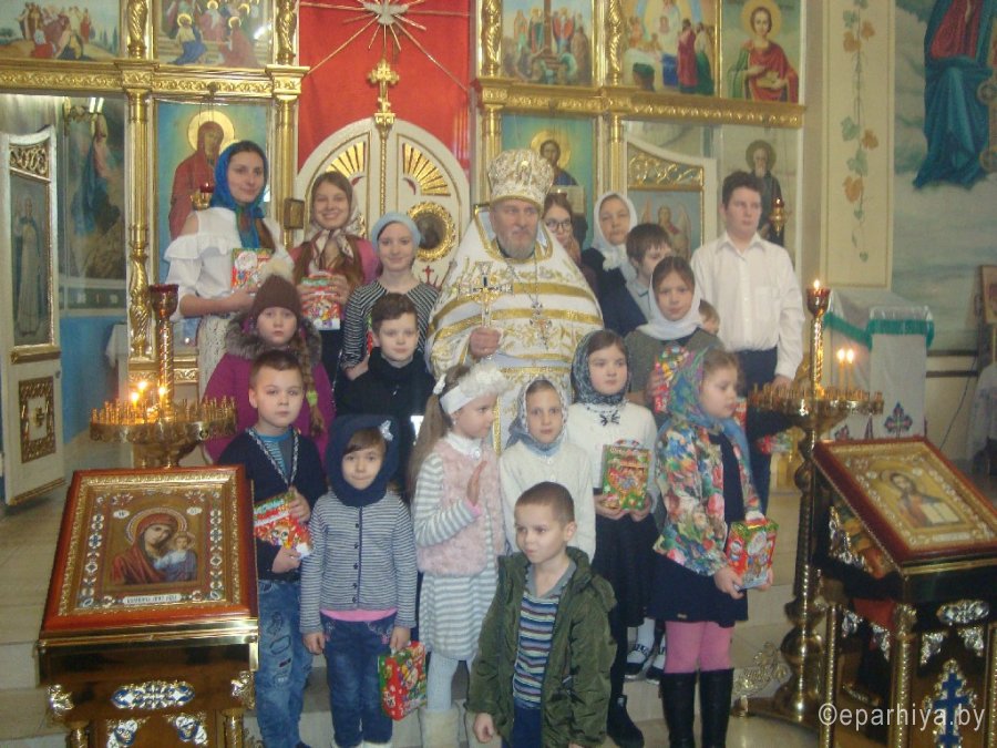 7 января в приходе храма Преображения Господня г. Ветки празднование Рождества Христова прошло особо торжественно. После окончания Божественной литургии перед прихожанами выступили воспитанники воскресной школы, которые в стихотворной форме поздравили всех с долгожданным праздником. Настоятель храма протоиерей Михаил Борисёнок поблагодарил детей за выступление и вручил им, а также постоянным прихожанам храма, сладкие подарки.