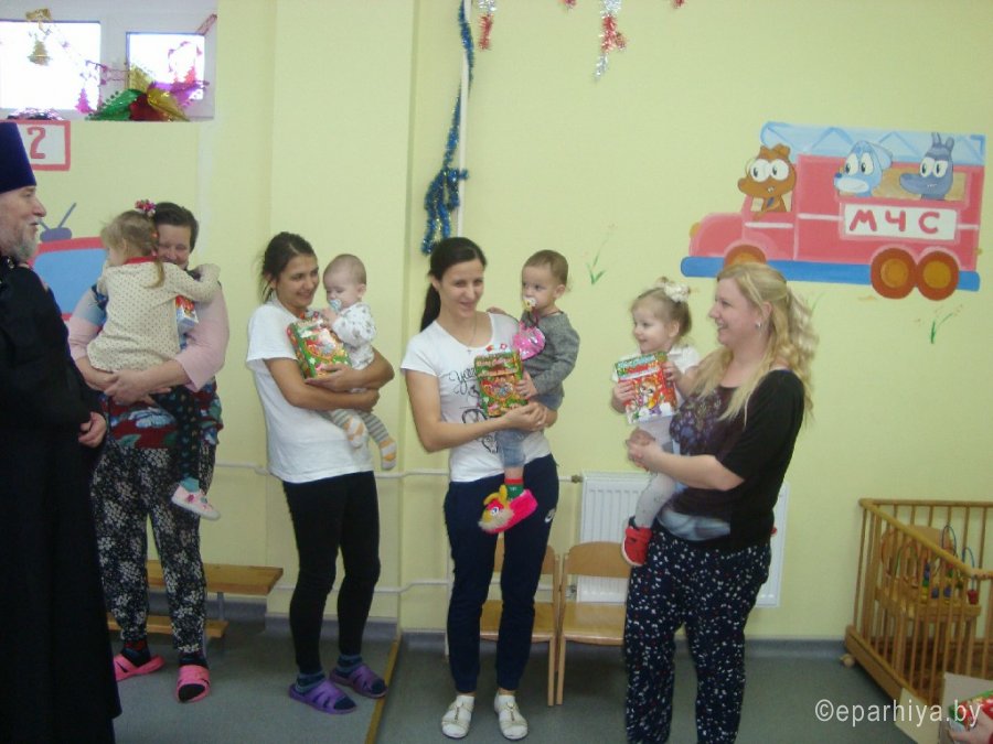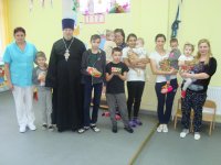 Затем с благовестием о Родившемся Богомладенце он посетил детское отделение Ветковской ЦРБ, где поздравил пребывающих на лечении детей с их матерями и, подарив им сладости, пожелал скорейшего выздоровления и Божьего благословения в новом году.