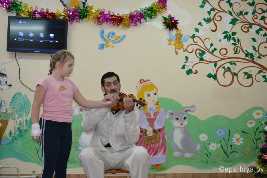 Для ребят был подготовлен небольшой поздравительный концерт, в котором принял участие местный скрипач Роберт Ребянченко. Так же волонтеры провели интересные и познавательные конкурсы, а в завершение подарили маленьким пациентам сладкие подарки.