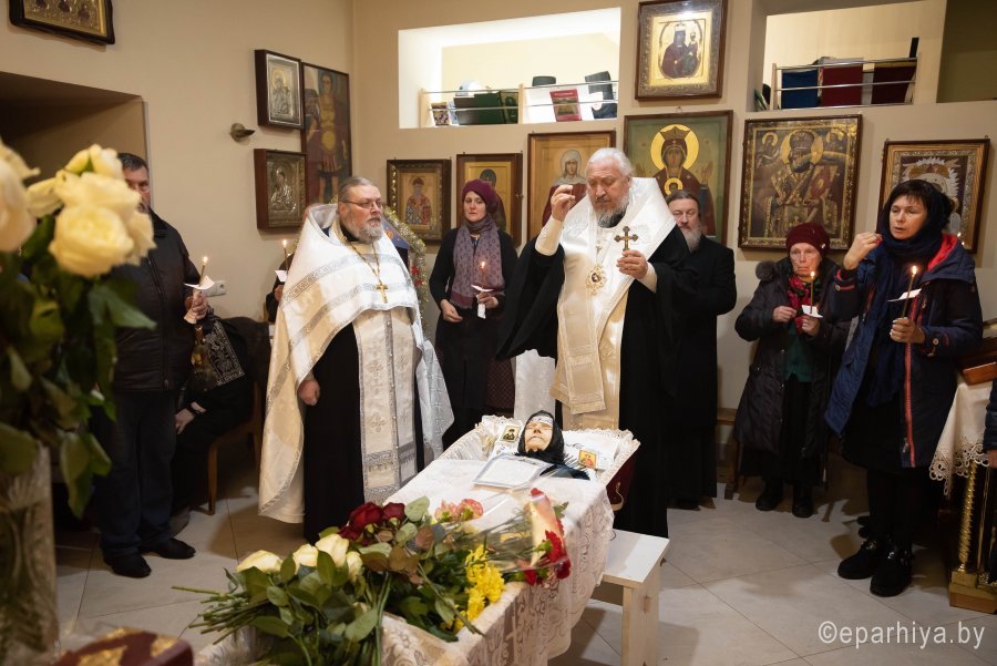 11 января 2020г. в Тихвинском женском монастыре г.Гомеля Высокопреосвященнейший Стефан совершил литию по новопреставленной Валентине Серафимовне Автуховой. Владыка выразил слова соболезнования родным и близким усопшей. |