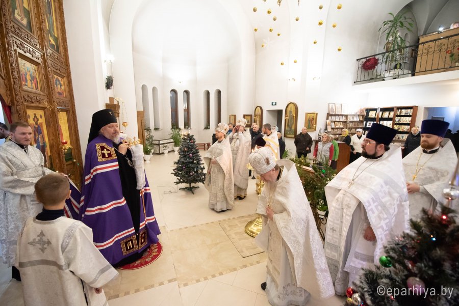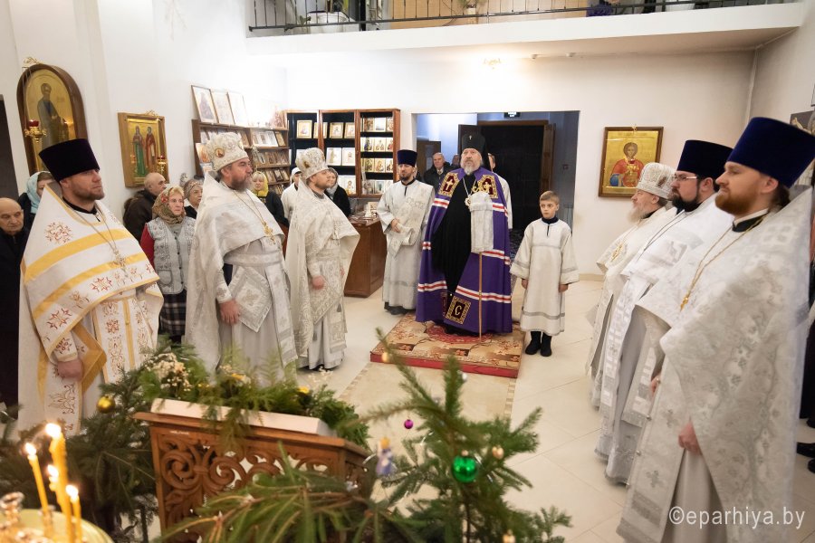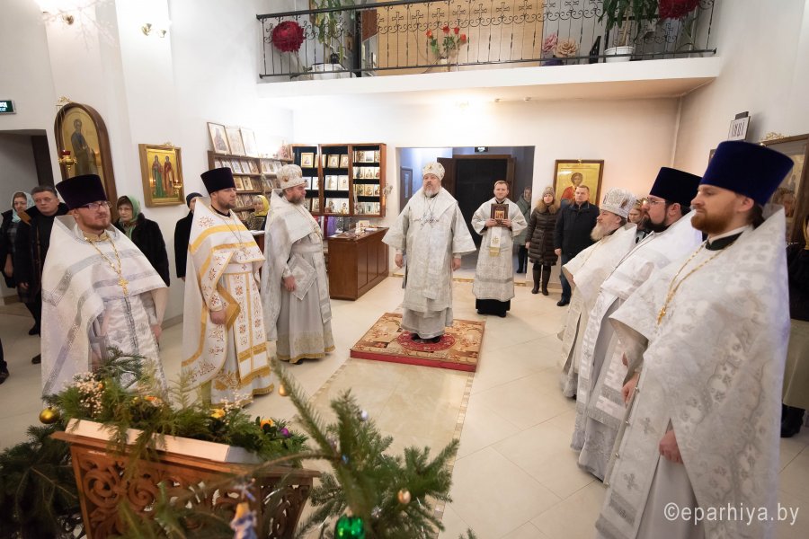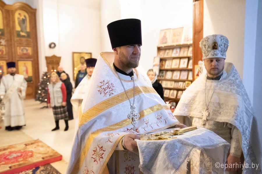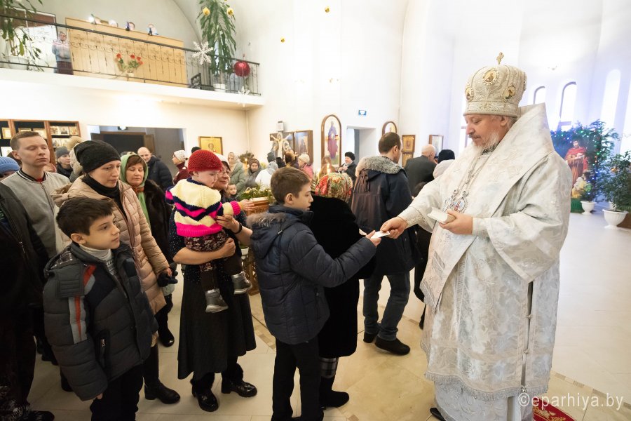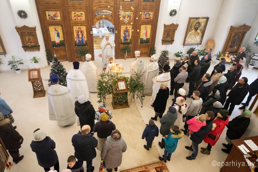Божественную литургию в Неделю 30-ю по Пятидесятнице в день памяти Иосифа Обручника, Давида царя и Иакова, брата Господня в приходе храма Грузинской иконы Божией Матери г. Гомеля 12января 2020г. совершил Высокопреосвященнейший Стефан, архиепископ Гомельский и Жлобинский. Высокопреосвященнейшему сослужили: секретарь Гомельской епархии протоиерей Георгий Алампиев, благочинный Гомельского городского округа протоиерей Игорь Ольшанов, настоятель прихода протоиерей Владимир Масалитин, настоятели приходов и духовенство епархии. По окончании богослужения Владыка Стефан поздравил причастников с принятием Святых Христовых Таин, обратился к молящимся со словами Архипастырского назидания и на память о совместной молитве раздал всем присутствующим иконки. |