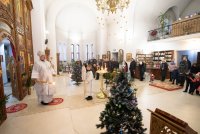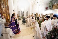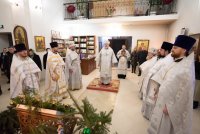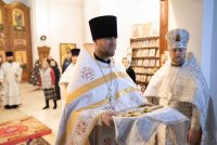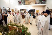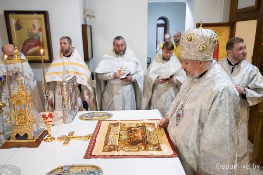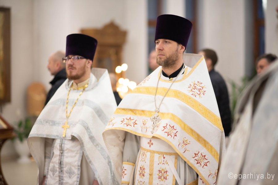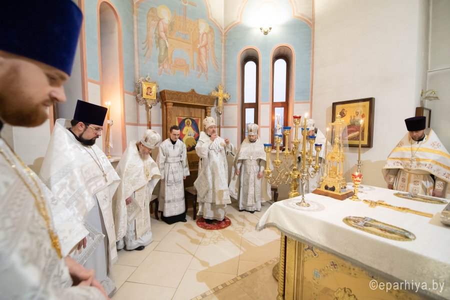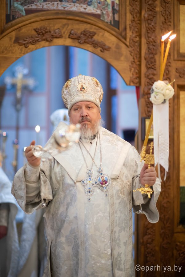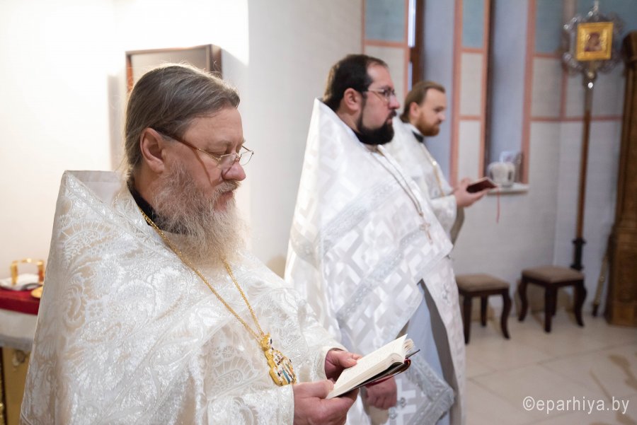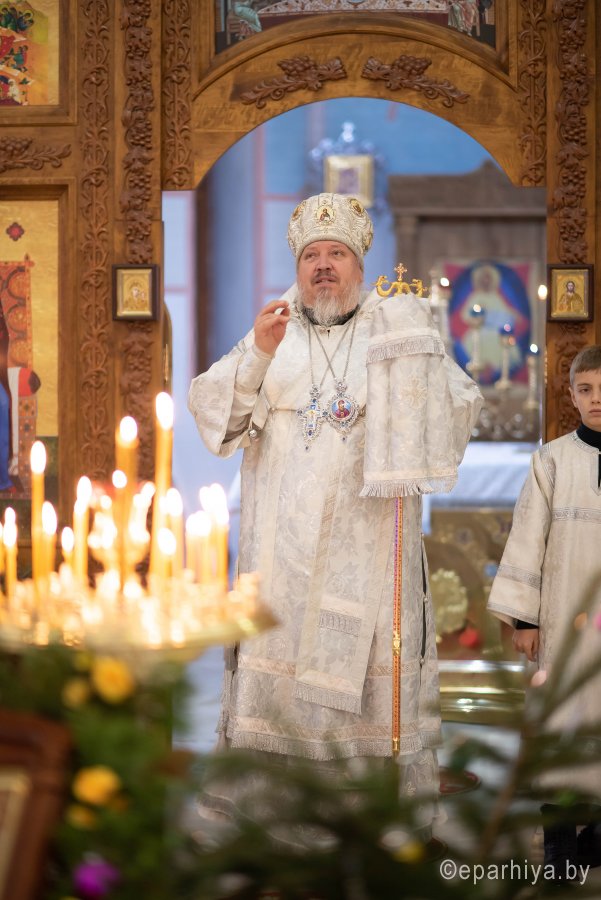 Божественную литургию в Неделю 30-ю по Пятидесятнице в день памяти Иосифа Обручника, Давида царя и Иакова, брата Господня в приходе храма Грузинской иконы Божией Матери г. Гомеля 12января 2020г. совершил Высокопреосвященнейший Стефан, архиепископ Гомельский и Жлобинский. Высокопреосвященнейшему сослужили: секретарь Гомельской епархии протоиерей Георгий Алампиев, благочинный Гомельского городского округа протоиерей Игорь Ольшанов, настоятель прихода протоиерей Владимир Масалитин, настоятели приходов и духовенство епархии. По окончании богослужения Владыка Стефан поздравил причастников с принятием Святых Христовых Таин, обратился к молящимся со словами Архипастырского назидания и на память о совместной молитве раздал всем присутствующим иконки. |