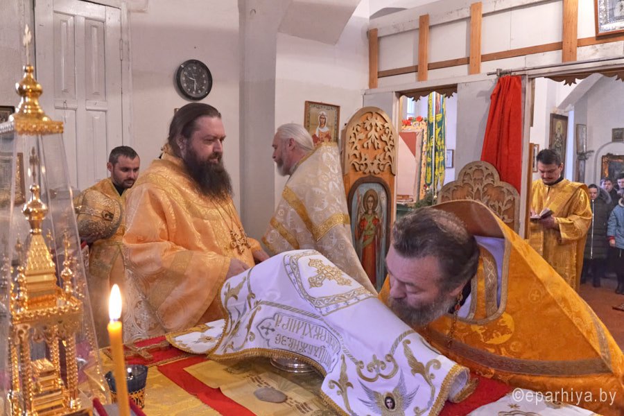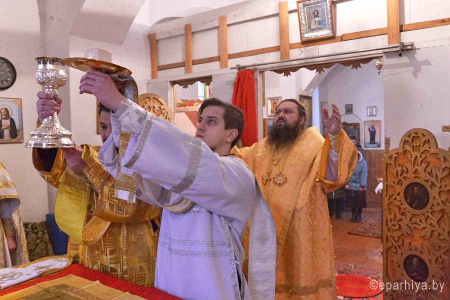 12 января 2020 г., епископ Светлогорский Амвросий, викарий Гомельской епархии, возглавил Божественную литургию в храме Покрова Божией Матери в агрогородке Болотня Рогачевского района. Его Преосвященству сослужили: благочинный Рогачевского округа протоиерей Алексей Смотрицкий, причт храма, духовенство округа и Гомельской епархии. По окончании богослужения владыка Амвросий поздравил всех молящихся с праздником воскресного дня, причастников с принятием Святых Христовых Тайн и обратился со словами архипастырского назидания. Пресс-служба Никольского монастыря |