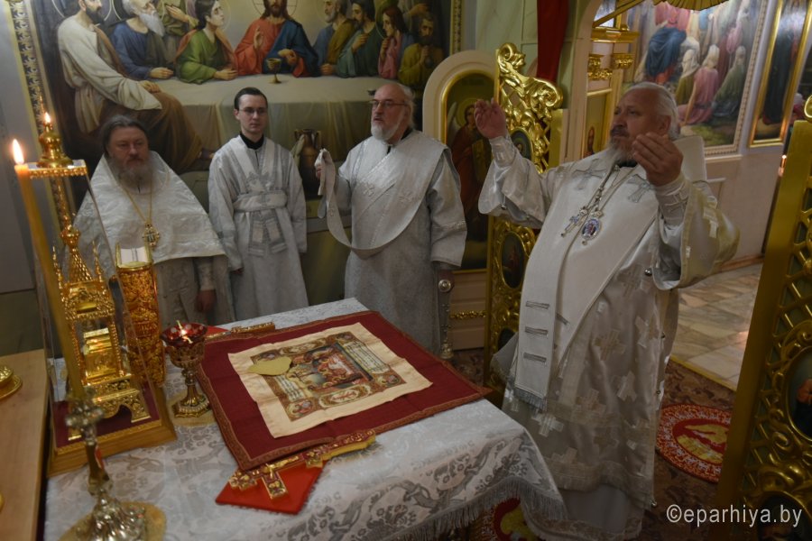 Божественную литургию в криптовом храме Петро-Павловского кафедрального собора г.Гомеля, освященного в честь Святой равноапостольной Марии Магдалины 13 января 2020г. в понедельник 31-й седмицы по Пятидесятнице, в отдание праздника Рождества Христова совершил Высокопреосвященнейший Стефан архиепископ Гомельский и Жлобинский в сослужении духовенства собора. По окончании Литургии Владыка Стефан поздравил причастников с принятием Святых Христовых Таин и обратился к молящимся со словами Архипастырского назидания. |
