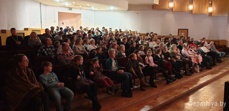 10 января 2020 года в УО «Гомельский государственный областной Дворец творчества детей и молодежи» состоялась поздравительное Рождественское мероприятие для воспитанников воскресной школы Петро-Павловского кафедрального собора, воспитанников школ-интернатов г. Гомеля, постояльцев отделений дневного пребывание для инвалидов территориальных центров социального обслуживания населения города, организованное отделом по работе с молодежью совместно с Петро-Павловским кафедральным собором в г. Гомеле. Мероприятие открыл приветствием и словами поздравления ответственный за работу с молодежью Гомельского городского благочиния иерей Павел Перещук: «Хочется в эти Рождественские дни от всей души пожелать вам всех земных благ, Божьей помощи, крепости духа, радости и душевного тепла! Дай Бог, чтобы родившийся в Вифлееме Младенец Христос снизошел Своей великой благодатию на всех присутствующих, и даровал Свои неизреченные милости». Постановка «Маленький принц в поисках планеты Деда Мороза», под руководством педагога дополнительного образования Николая Соснина, произвела на всех присутствующих сильное впечатление, во время которого никто не остался без внимания. Во время мероприятия сказочные герои спускались в зал и проводили интерактивные игры с детьми, а также приглашали принять участие в танцевальных играх на сцене. После, все желающие могли подарить подарки, в виде подготовленных стихотворений или рождественских песен, сказочным гостям. В заключении мероприятия все присутствующие получили сладкие подарки. |