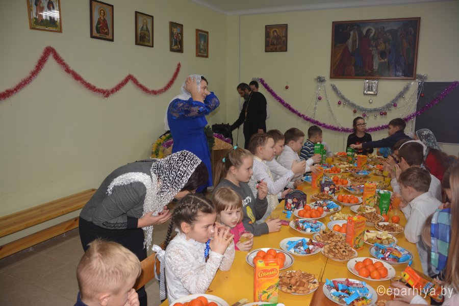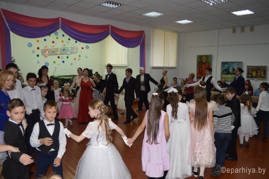 Уже по доброй традиции ежегодно перед праздником Рождества Христова в приходах Речицкого благочинного округа проходят праздничные мероприятия посвященные встрече Богомладенца Христа. Как правило начинается подготовка к празднику с посещения священнослужителями новогодних утренников которые проводятся в учреждении образования «Речицкий государственный социально-педагогический центр», учреждение «Речицкий дом-интернат для детей инвалидов с особенностями психофизического развития» и в Речицком территориальном центре социального обслуживания населения. Настоятель храма Покрова Пресвятой Богородицы в г. Речице протоиерей Николай Ефименко и клирик Свято-Успенского собора в г. Речице, протоиерей Ростислав Миронович, как добрые друзья, приняли участие в мероприятиях проводимых в этих учреждениях. Настоятель Прихода храма Казанской иконы Божией матери д. Милоград посетил с Рождественскими поздравлениями социально не защищенных людей и вручил им продуктовые наборы к празднику. В дни школьных каникул с экскурсиями Свято-Успенский собор посетили учащиеся средних школ № 1, № 8 и № 10 г. Речицы. Им рассказывалось евангельское повествование истории о рождении Богомладенца Христа, о том, что появился он на свет в пещере-вертепе, предназначенной для содержания домашнего скота и, что первыми поклонились Христу пастухи. 7 января, сразу после окончания Рождественского Богослужения, ребята занимающиеся в воскресных школах Прихода храма Покрова Пресвятой Богородицы в г. Речице и Прихода Свято-Успенского собора в г. Речице представили для прихожан праздничные Рождественские концерты. Святочными песнопениями и театрализованным представлением о событиях, произошедших в Вифлееме Рождественской ночью, они приветствовали всех собравшихся в храмах. 10 января в педагогической конференции преподавателей истории школ района, которую отдел образования Речицкого райисполкома проводил на базе СШ № 5 г. Речицы, приняли участие настоятель Прихода храма Покрова Пресвятой Богородицы в г. Речице протоиерей Николай Ефименко, настоятель Прихода храма святого Архангела Михаила агрогородка Ровенская Слобода иерей Виталий Штойко и клирик Свято-Успенского собора в г. Речице диакон Сергий Парошин. Все священнослужители поздравили присутствующих с праздником Рождества Христова, а учащиеся школы представили на суд общественности театрализованное представление своего научного изыскания о жизни царя Николая II. В Пригородный ясли-сад Речицкого района на Рождественскую сказку к детям 10 января пришли настоятель Прихода храма Святителя Николая Чудотворца д. Бронное протоиерей Иоанн Кисель и клирик Прихода храма Покрова Пресвятой Богородицы в г. Речице иерей Валерий Апанович. А 12 января свои двери, для участников Рождественского бала, радушно открыла Речицкая детская школа искусств. Преподаватель воскресной школы Свято-Успенского собора в г. Речице Мария Хвостова, со своими воспитанниками и их родителями, которым помогли педагоги и учащиеся школы искусств организовали феерический праздник для всех присутствующих на балу. И как сказал в своём напутственном слове благочинный Речицкого округа, настоятель Прихода Свято-Успенского собора в г. Речице, протоиерей Алексей Пешко: «Отрадно видеть детей и взрослых, которые в эти радостные дни пр