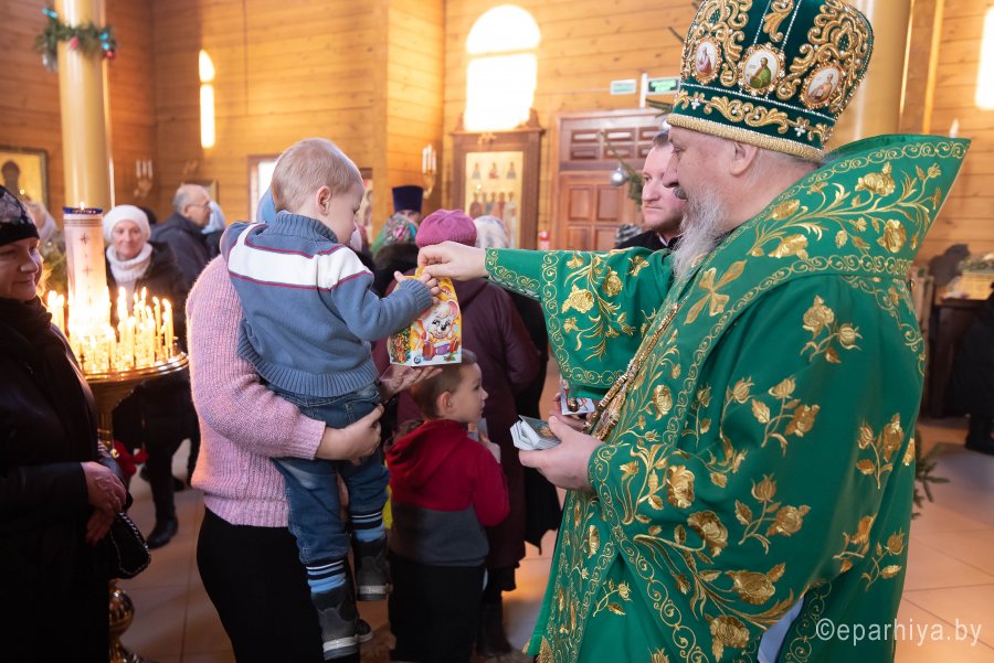 Божественную литургию в день памяти прп. Серафима Саровского в одноименном храме г.Жлобина 15 января 2020г. совершил Высокопреосвященнейший Стефан, архиепископ Гомельский и Жлобинский. Высокопреосвященнейшему сослужили: секретарь Гомельской епархии протоиерей Георгий Алампиев, благочинный Жлобинского округа протоиерей Василий Пилипенко, настоятель прихода и духовенство епархии. По окончании богослужения Владыка поздравил духовенство и прихожан с праздником, причастников с принятием Святых Христовых Таин, обратился к молящимся со словами Архипастырского назидания и в память об этом дне раздал всем присутствующим иконки, а самые маленькие прихожане получили сладкие подарки. |