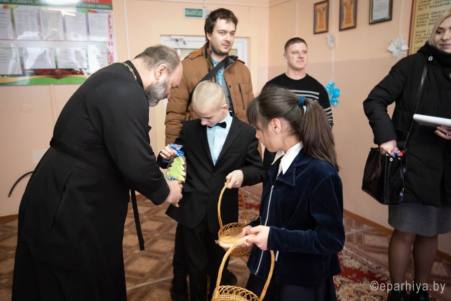 В дни Рождественской радости, Высокопреосвященнейший Стефан, архиепископ Гомельский и Жлобинский совместно с председателем отдела по работе с молодежью Гомельской епархии иереем Дмитрием Мельниковым и представителями отдела посетили ГУО «Улуковская вспомогательная школа-интернат», сотрудничество с которым уже длится не первый год. Директор учреждения Наталья Геннадьевна Прудникова провела экскурсию и ознакомила с текущими делами и обстановкой в доме-интернат. В дар учреждению были переданы для воспитанников интерната утюги и микроволновая печь, для занятий в классе социальной адаптации. Сегодня в Улуковской школе-интернат проживают 118 детей. У всех сложности со здоровьем, 80 из них не знают, что такое родительская забота. Поэтому Владыка Стефан отметил: «Внимание к таким детям и к их адаптации к социальной жизни особенное. Наш долг оказывать всяческую посильную помощь детям, находящимся в непростой жизненной ситуации». |
