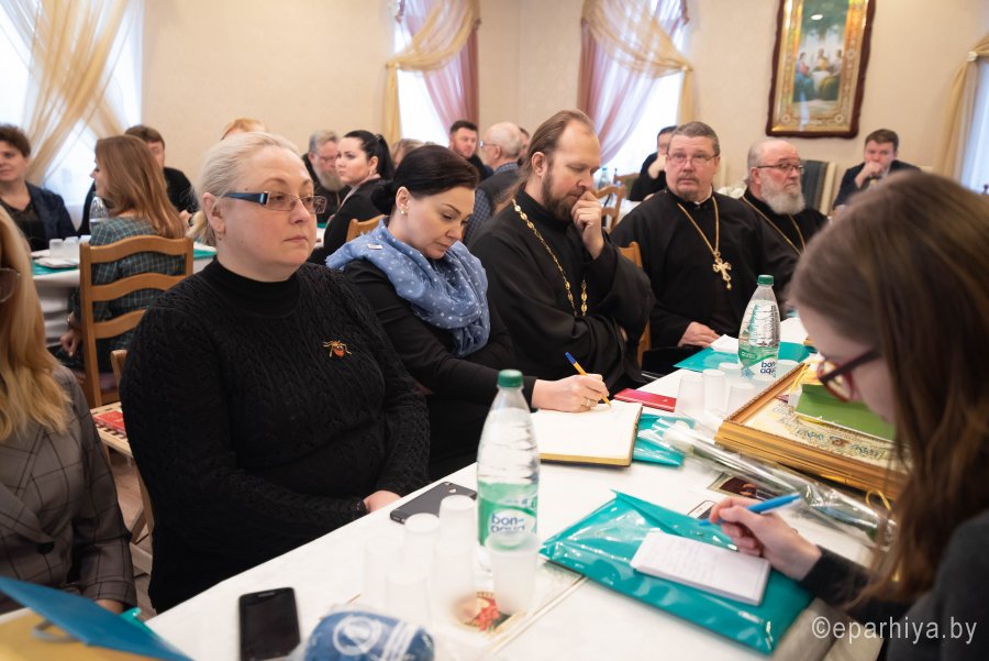 Очередное заседание коллегии информационного отдела Гомельской епархии состоялось 16 января 2020г. в конференц-зале отдела под председательством Высокопреосвященного Стефана, архиепископа Гомельского и Жлобинского. В мероприятии приняли участие: Преосвященный Амвросий епископ Светлогорский, викарий Гомельской епархии, начальник отдела СМИ и печати Гомельского облисполкома Борисов П.В., председатель Информационного отдела протоиерей Олег Кострома, председатели отделов епархии, благочинные и координаторы епархиальных округов и представители светских средств массовой информации. С приветственным словом к участникам форума обратился Владыка Стефан, отметив важность работы в информационном пространстве и поблагодарил всех за труды. С докладом «Становление и развитие информационной деятельности в Гомельской епархии и взаимодействие со СМИ» выступил председатель Информационного отдела протоиерей Олег Кострома. О тесном сотрудничестве с Гомельской епархией рассказала в своем выступлении главный редактор учреждения «Редакция газеты «Гомельские ведомости» Селезнева Ольга Анатольевна. Также были заслушаны доклады директора РУП РТЦ «Телерадиокомпания «Гомель» Еврасовой Светланы Геннадьевны и заместителя главного редактора газеты «Светлагорскія навіны» Хомицевича Дмитрия Александровича которые рассказали о освещении православных мероприятий в информационных программах и на страницах печатных изданий, а также о важности такой просветительской работы. Монахиня Ангелина, насельница Иоанно-Кормянского женского монастыря и игумения Свято-Успенского женского монастыря д. Казимирово Иоанна (Ярец) поделились опытом ведения страницы в сети Instagram. В ходе работы коллегии было презентовано второе издание книги Евгении Жуковской «Приход в медиа мире», ориентированной на ведение информационной работы в православных общинах. Также во время заседания коллегии протоиереем Олегом Костромой был представлен юбилейный епархиальный календарь на 2020 год «Вехи истории. Люди и судьбы», изданный Информационным отделом, посвященный 30-летию возрождения Гомельской епархии и 25-летию со дня основания Никольского мужского монастыря в г. Гомеле. Издание включает в себя полный календарь церковных праздников, престольные праздники действующих и строящихся храмов, дни почитания святых Гомельской земли. В нем также представлены: полный месяцеслов, указатель чтений Священного Писания, указатель имен святых и икон Божией Матери. В тексте календаря использованы главы из книги Слесарева А.В. «Гомельская православная епархия в первой половине 20 века: образование, развитие, ликвидация», так же «Мартиролог Гомельской епархии (1917-1953): биографический справочник», а также исторические справки о Никольском монастыре в г.Гомеле. Во время заседания коллегии был рассмотрен ряд рабочих вопросов по ведению сайтов благочиний и приходов, в диалоге с координаторами выяснили типичные ошибки, которые допускаются при подаче материала на епархиальный сайт и о необходимости обновления досок информации в приходах. Был определен перечень юбилейных дат 2020 года и план реализации основных проектов. В ходе коллегии Высокопреосвященнейший Стефан во внимание к многолетнему вкладу в формировании духовно-нравственных ценностей и активную просветительску