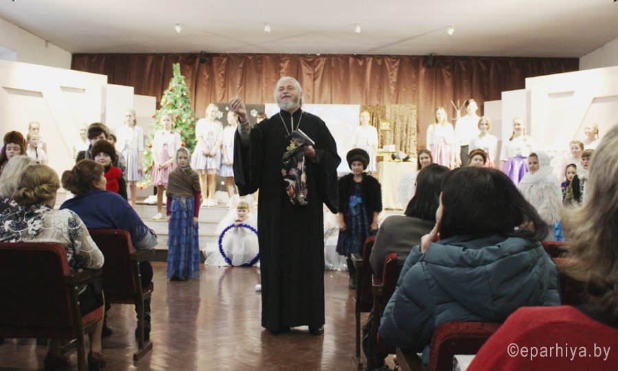Рождественским спектаклем «Чудесные сапожки», подготовленным театральными коллективами средней школы №4 г.Рогачёва имени В.С.Величко, завершаются святочные мероприятия в учреждениях образования Рогачёвского района. Представление состоялось 16 января 2020г. в рамках школьного рождественского фестиваля «Свет Вифлеемской звезды», который ежегодно проходит в этом учреждении образования в течение Святок. Зрители окунулись в жизнь провинциального городка 19 века, жители которого готовятся встретить праздник. Почётным гостем мероприятия стал настоятель прихода храма святого благоверного князя Александра Невского в г.Рогачёве. протоиерей Алексей Смотрицкий. Священнослужитель поблагодарил юных артистов и их педагогов Никитину Наталью Евгеньевну и Контанистову Татьяну Валерьевну за представление, поздравил всех с Рождеством Христовым и объяснил присутствующим в зале детям и взрослым духовный смысл праздника. Приятным завершением святочного вечера стали рождественские сувениры от прихода. Материал предоставлен Рогачевским благочинным округом |
