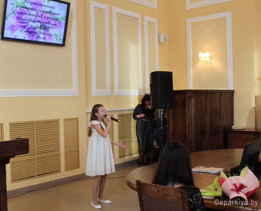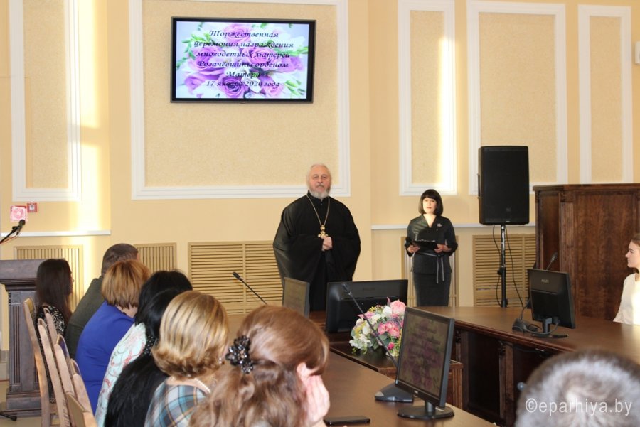Благочинный церквей Рогачёвского округа протоиерей Алексей Смотрицкий принял участие в торжественной церемонии награждения многодетных матерей Рогачёвщины орденом Матери, которая состоялась 17 января 2020г. в Доме книги имени Владимира Короткевича. Родить и воспитать ребёнка — ответственное дело. А поставить на ноги пятерых и более детей в наше время — настоящий женский подвиг, заслуживающий высокой награды. Ведь на плечи женщины ложится не только создание домашнего уюта, который поддерживается теплом её сердца, но и забота о воспитании детей. Протоиерей Алексей Смотрицкий в приветственном слове подчеркнул, что в дни Святок Православная Церковь чтит память святителя Василия Великого и вспоминает всю его семью, в которой к лику святых причислены и родители, и дети: три брата и две сестры святителя. Таков пример истинного христианского воспитания в семье, к которому мы должны стремиться. Орденом Матери уже награждены 109 женщин Рогачёвщины, родившие и воспитывающие пятерых и более детей. К их числу в этот день присоединились ещё 8 матерей. Председатель Рогачёвского районного исполнительного комитета Виталий Александрович Сушко наградил орденом Матери Воронкову Анну Михайловну, Давыденко Ольгу Сергеевну, Калиновскую Татьяну Михайловну, Солодовникову Татьяну Владимировну, Сучкову Галину Анатольевну, Тангаеву Марину Петровну, Ширыкалову Анну Ивановну и Щербакову Олесю Владимировну. Тёплые слова поздравления в адрес награждённых прозвучали от председателя Рогачёвского РИК Сушко Виталия Александровича, начальника управления по труду и социальной защите Безрученко Людмилы Александровны, председателя районной организации Белорусского союза женщин Кацубо Людмилы Николаевны. Цветы и подарки от общественных организаций и от прихода храма святого благоверного князя Александра Невского добавили многодетным матерям хорошего настроения. А искренние песни о маме в исполнении Гулевич Дарьи и Казакевич Полины растрогали до слёз. Материал предоставлен Рогачевским благочинным округом |