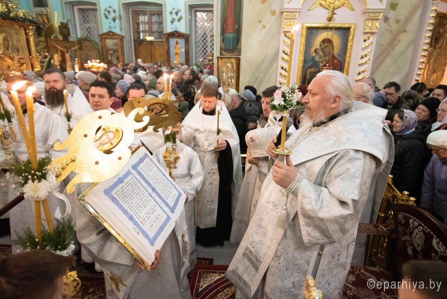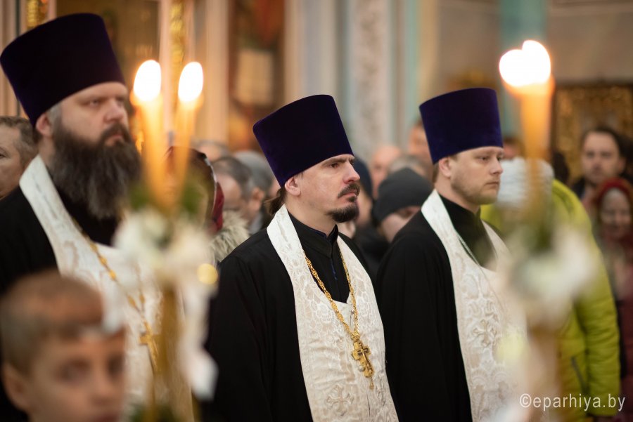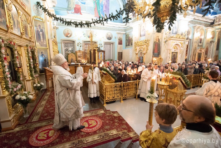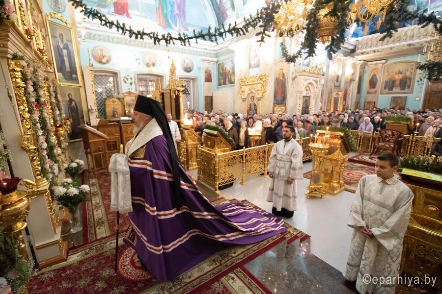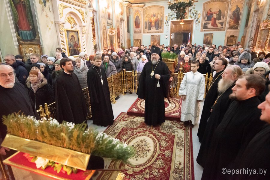 Уставные богослужения праздника Богоявления 18 января 2020г. в Петро-Павловском кафедральном соборе г.Гомеля совершил Высокопреосвященный Стефан, архиепископ Гомельский и Жлобинский. Высокопреосвященному сослужили: секретарь Гомельской епархии протоиерей Георгий Алампиев и духовенство собора. В завершении богослужения Владыка обратился к духовенству и пастве со словами поздравления с праздником Богоявления |
