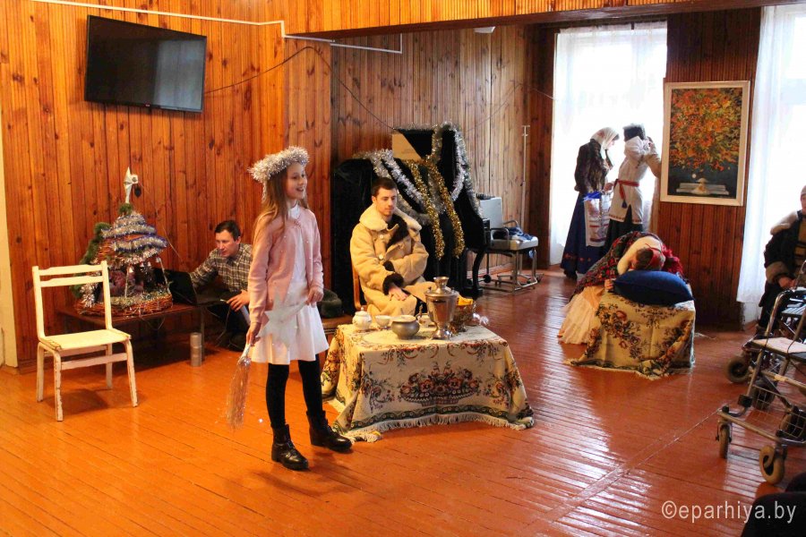 Прошел праздник Рождества Христова, и наступили святочные дни. Святки – это праздничный период с 8 по 17 января, от Рождества до Крещенского сочельника, или, как говорилось в народе, «от звезды до воды». Это особое время в году, время добра и радости, время славить родившегося Христа и делиться праздником с другими. Вот и ребята из молодежного братства Георгия Победоносца доставили незабываемую радость одиноким старичкам в Старо-Дятловичской больнице сестринского ухода. Для них было показано театрализованное представление по сказке "Морозко", а затем всех с праздником поздравил иерей Александр Пуков и все получили подарки от героев сказки. На глазах у всех были слезы радости... |