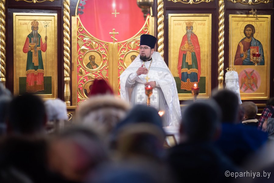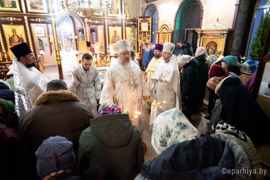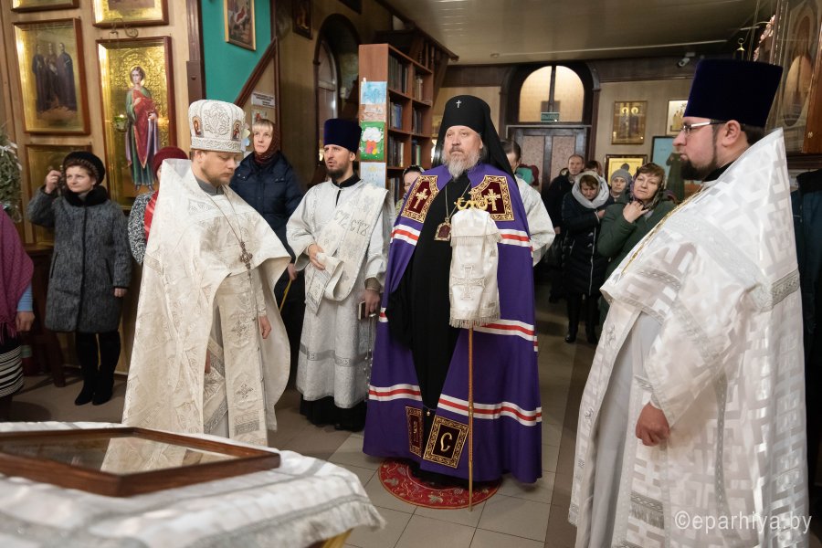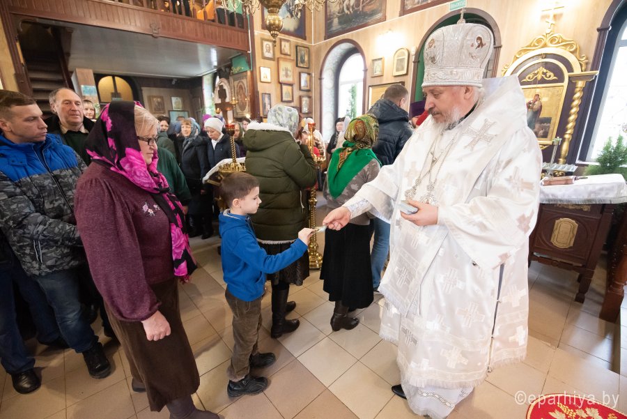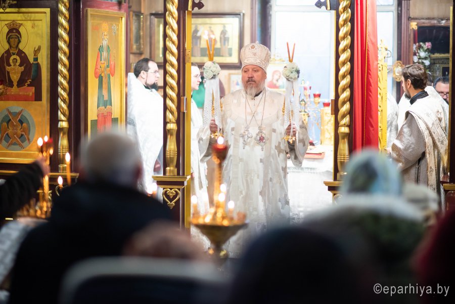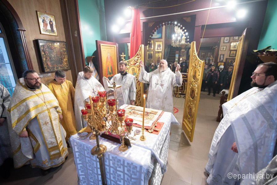 Божественную литургию в Неделю 32-ю по Пятидесятнице 26 января 2020г. в приходе храма Святителя Николая Чудотворца в г. Гомеле совершил Высокопреосвященнейший Стефан, архиепископ Гомельский и Жлобинский. Высокопреосвященнейшему сослужили: секретарь Гомельской епархии протоиерей Георгий Алампиев, благочинный Гомельского городского округа протоиерей Игорь Ольшанов, настоятель прихода протоиерей Игорь Жабняк и духовенство епархии. По окончании богослужения Владыка Стефан поздравил причастников с принятием Святых Христовых Таин, обратился к молящимся со словами Архипастырского назидания и на молитвенную память раздал всем присутствующим иконки. |