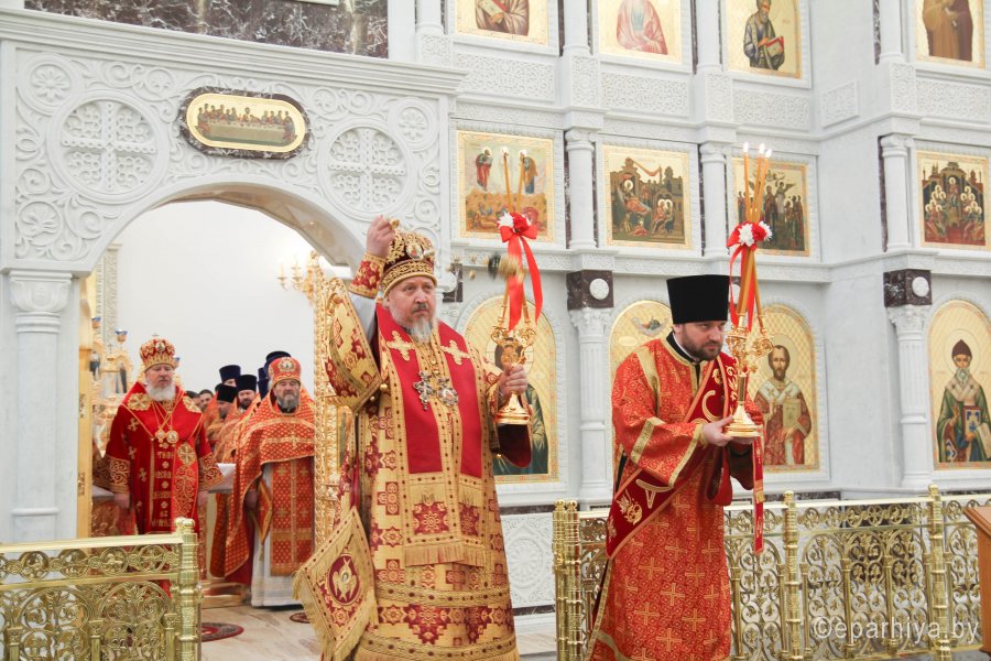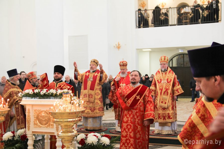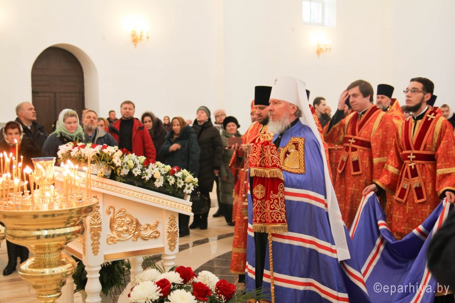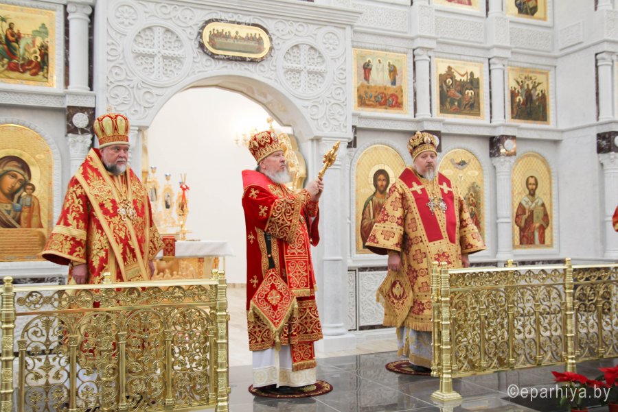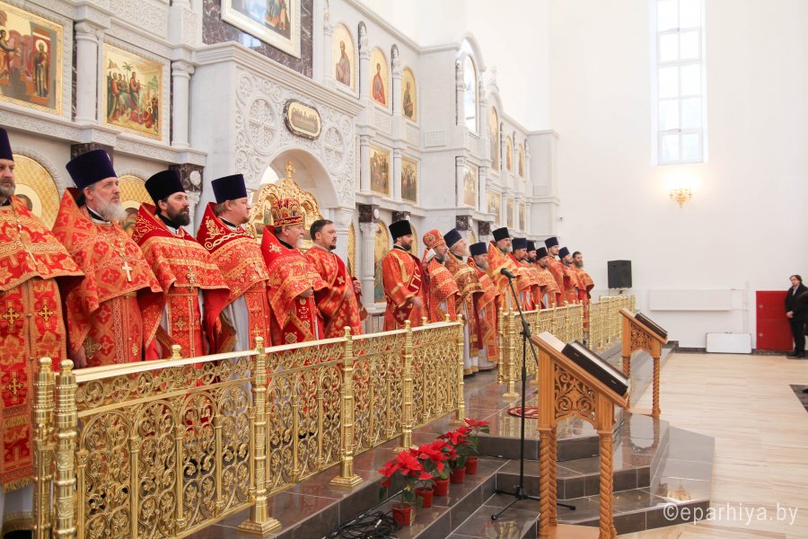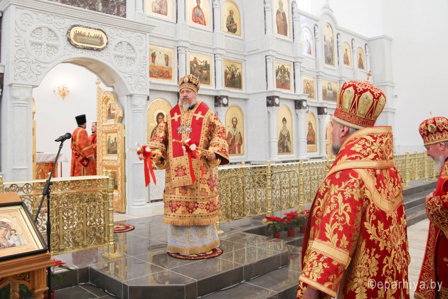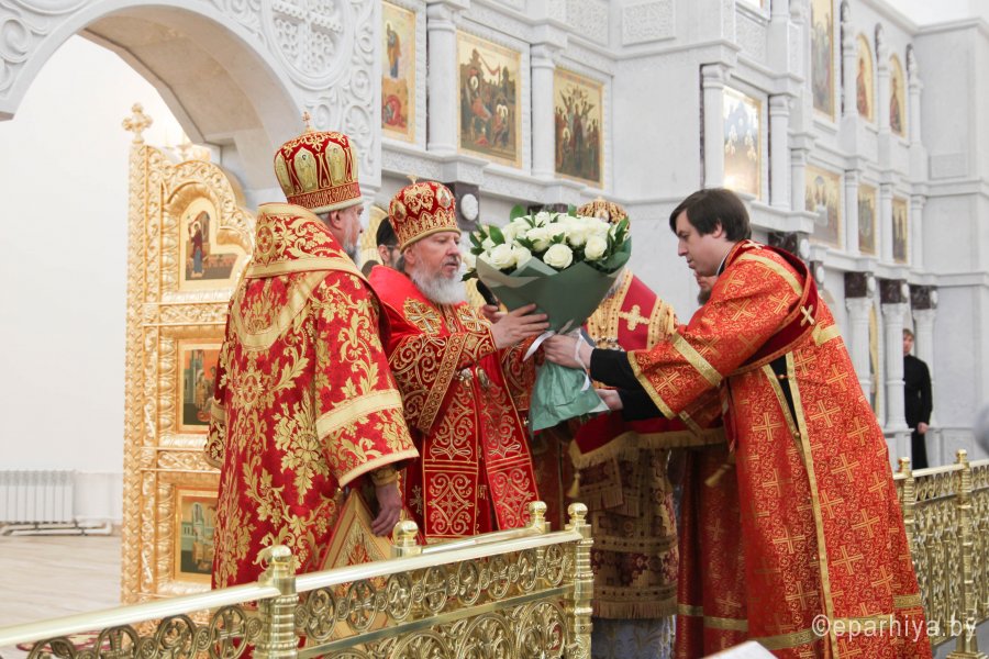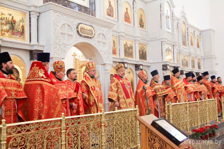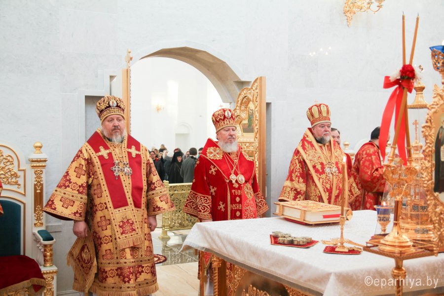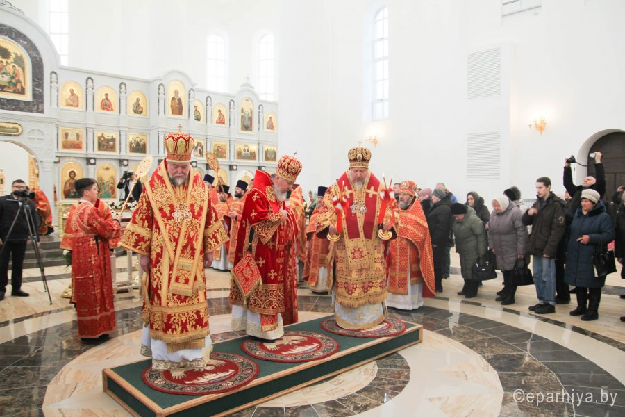 В день памяти священномученика Владимира (Богоявленского) 7 февраля 2020г. Высокопреосвященнейший Стефан принял участие в торжествах по случаю дня тезоименитства Преосвященного Владимира, епископа Клинцовского и Трубчевского, которые прошли в кафедральном соборе в честь Богоявления Господня в Клинцах (РОССИЯ). Божественную литургию в этот день возглавил Высокопреосвященнейший Александр, митрополит Брянский и Севский в сослужении Высокопреосвященнейшего Стефана, архиепископа Гомельского и Жлобинского, Преосвященного Владимира, епископа Клинцовского и Трубчевского и духовенства Брянской митрополии. По окончании богослужения Преосвященный Владимир принял слова поздравления от Высокопреосвященных митрополита Александра, архиепископа Стефана, а также от духовенства и прихожан собора. |