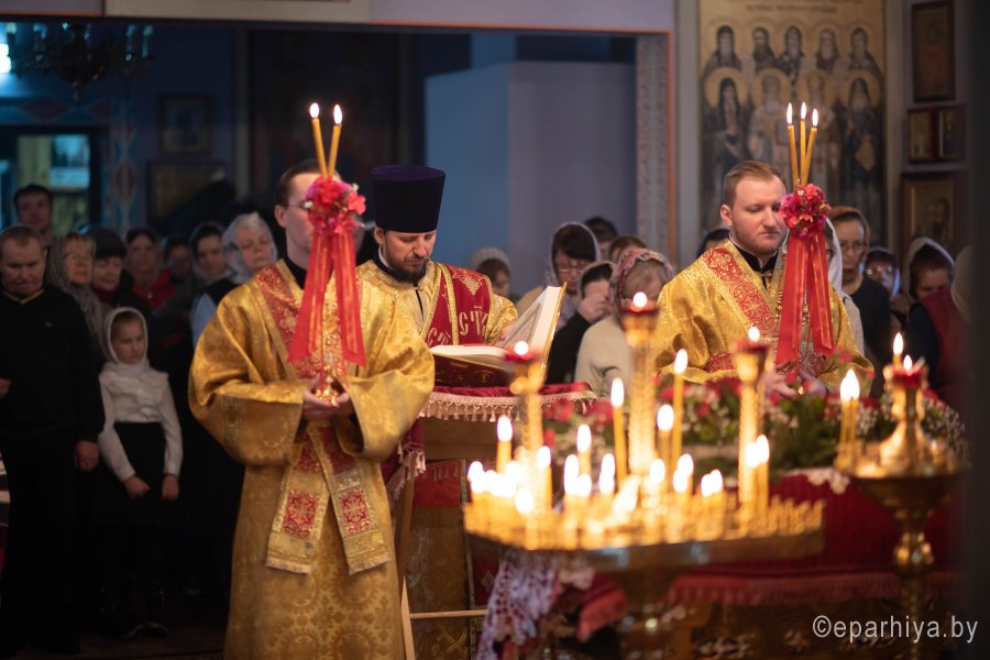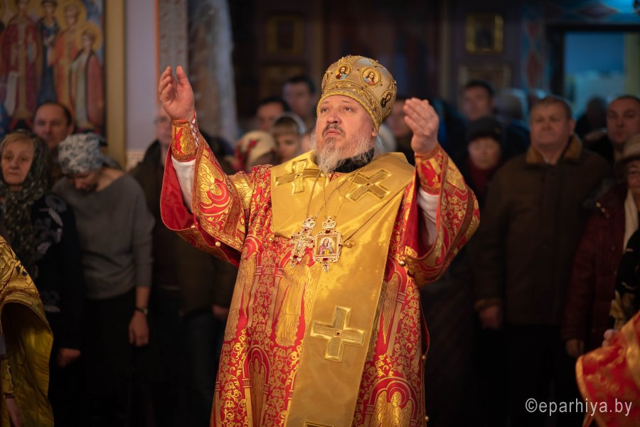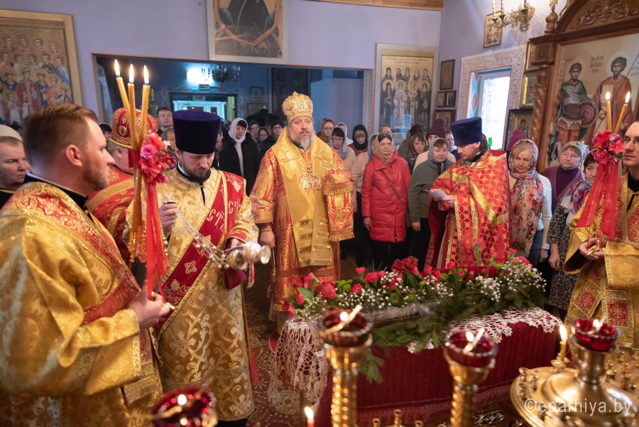 Божественную литургию в Неделю мытаря и фарисея в приходе храма святого мученика Иоанна Воина г. Жлобина 9 февраля 2020г. совершил Высокопреосвященнейший Стефан, архиепископ Гомельский и Жлобинский. Высокопреосвященнейшему сослужили: секретарь Гомельской епархии протоиерей Георгий Алампиев, благочинный Жлобинского округа протоиерей Василий Пилипенко, настоятель прихода протоиерей Михаил Борисенок и духовенство епархии. По завершении богослужения была совершена лития по всем усопшим, пострадавшим в годину гонений за веру Христову (согласно определению Священного Синода Русской Православной Церкви от 30 января 1991 года на основании решения Поместного Собора 1917–1918 гг.). Поминальные богослужения были совершены во всех храмах Гомельской епархии. По окончании богослужения Владыка поздравил причастников с принятием Святых Христовых Таин, обратился к молящимся со словами архипастырского назидания и на молитвенную память раздал всем присутствующим иконки. |
