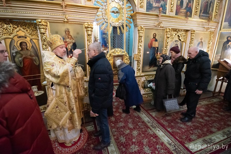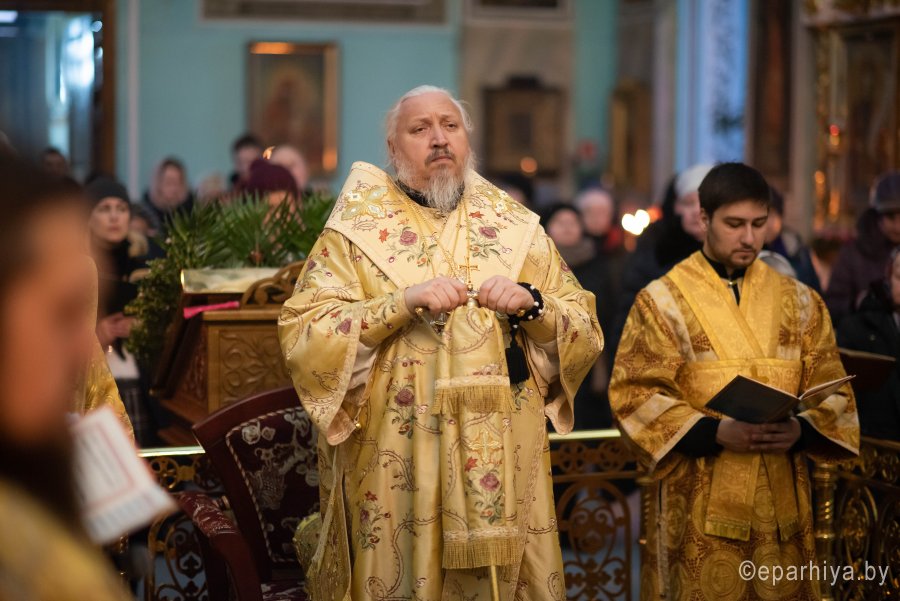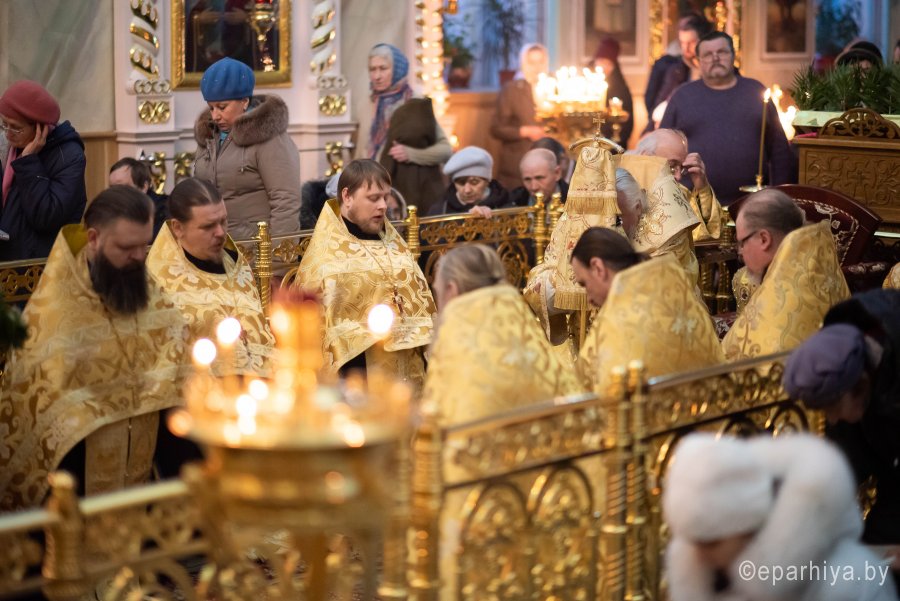 Вечернее богослужение с чтением акафиста на распев в Петро-Павловском кафедральном соборе г.Гомеля 9 февраля 2020г. совершил Высокопреосвященнейший Стефан архиепископ Гомельский и Жлобинский. Высокопреосвященному сослужили: секретарь Гомельской епархии протоиерей Георгий Алампиев и духовенство собора. По окончании богослужения Владыка обратился к молящимся со словами архипастырского назидания. |