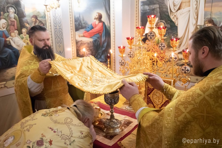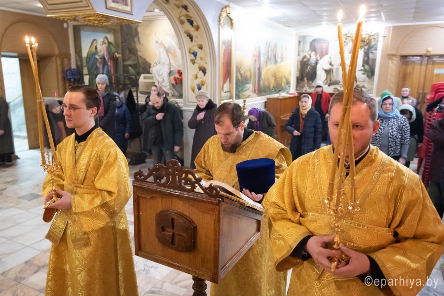 Божественную литургию в криптовом храме Петро-Павловского кафедрального собора г.Гомеля, освященного в честь Святой равноапостольной Марии Магдалины,10 февраля 2020г. в день памяти преподобного Ефрема Сирина совершил Высокопреосвященнейший Стефан архиепископ Гомельский и Жлобинский в сослужении духовенства собора. По окончании Литургии Владыка Стефан поздравил причастников с принятием Святых Христовых Таин и обратился к молящимся со словами архипастырского назидания. |