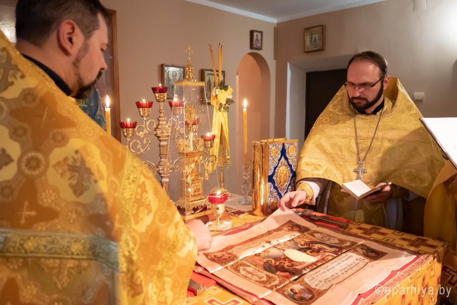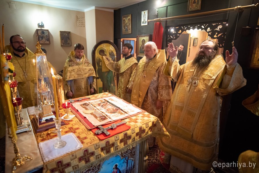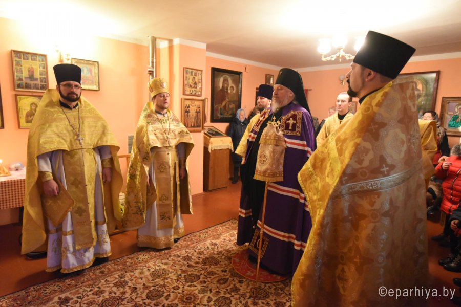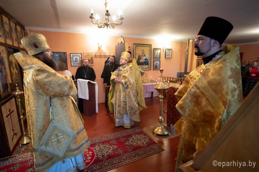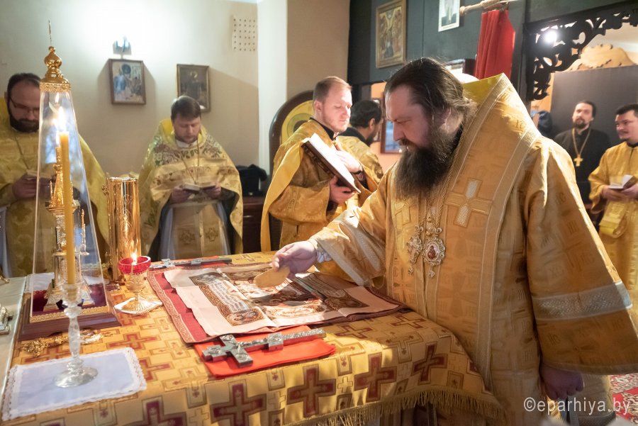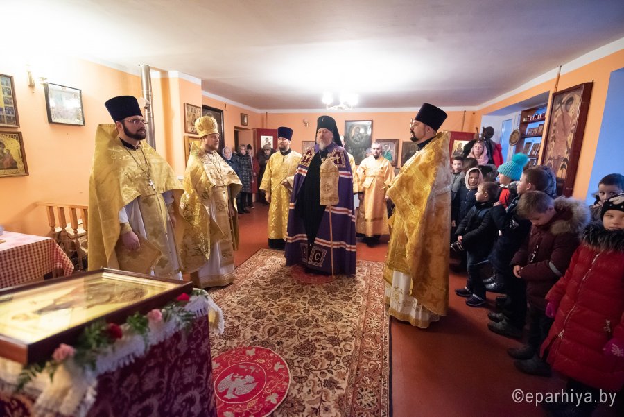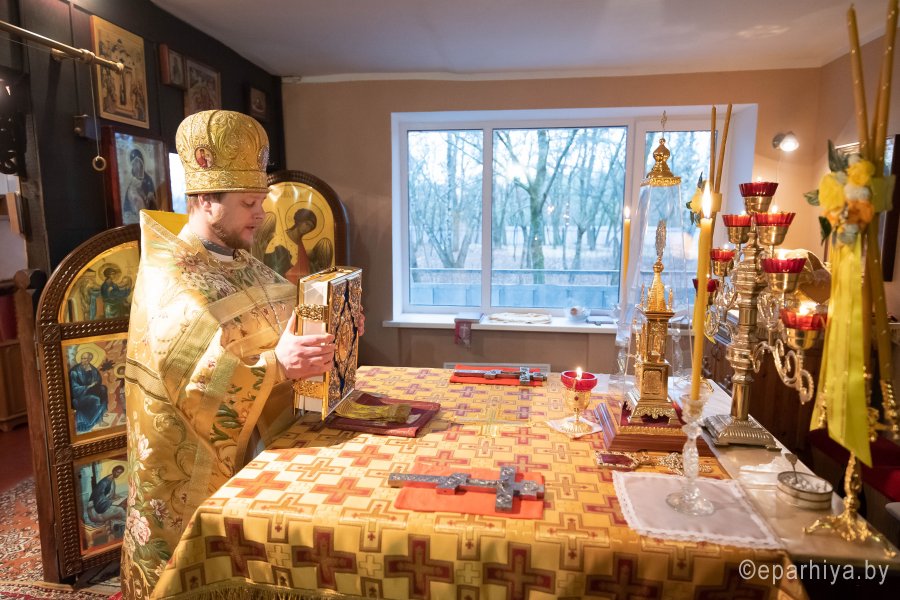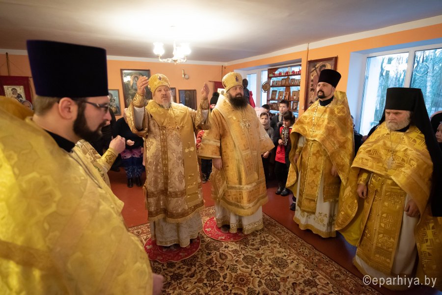 Божественную литургию в день памяти святителя Лаврентия Туровского на подворье Свято-Никольского мужского монастыря аг.Терюха в храме Смоленской иконы Божией Матери 11 февраля 2020г. совершили Высокопреосвященнейший Стефан, архиепископ Гомельский и Жлобинский и епископ Светлогорский Амвросий, викарий Гомельской епархии. Архипастырям сослужили: секретарь Гомельской епархии протоиерей Георгий Алампиев, благочинный Гомельского районного округа протоиерей Артемий Кривицкий, председатель Комиссии по канонизации святых Гомельской епархии протоиерей Александр Лопушанский и духовенство епархии. По окончании богослужения Владыка поздравил причастников с принятием Святых Христовых Таин и обратился к молящимся со словами архипастырского назидания. |