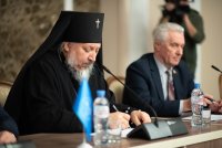 Высокопреосвященнейший Стефан, архиепископ Гомельский и Жлобинский, принял участие в пленуме Гомельского областного отделения ОО «Белорусский фонд мира», прошедшего 12 февраля 2020 года в стенах Гомельского областного общественно-культурного центра. На протяжении многих лет общественное объединение, членом правления которого является Владыка Стефан, выступает за укрепление мира и дружбы между людьми, государствами и народами. Белорусский фонд мира и Православная Церковь имеют схожие цели и задачи в области благотворительности и духовно-нравственного воспитания подрастающего поколения. Мероприятия, проводимые общественным объединением, направлены на воплощение в жизнь идей милосердия, поддержку незащищенных слоев населения, пропаганду патриотизма, поддержку одаренной молодежи. В рамках форума были определены задачи по миротворческой и благотворительной деятельности на ближайшее время. |