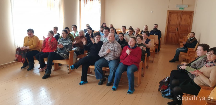 В рамках проведения епархиальной акции «От сердца к сердцу», 11 февраля 2020 года, представители отдела по работе с молодежью и Петро-Павловского кафедрального собора, посетили отделение дневного пребывания для инвалидов учреждения «Центр социального обслуживания населения Советского района г. Гомеля». Священнослужители иерей Алексей Сергеев и иерей Дмитрий Мельников провели духовно-просветительскую беседу с воспитанниками центра, в ходе которой вручили ребятам подарочные наборы, иконки, а также передали в дар руководству учреждения православные книги для библиотеки. После чего в актовом зале учреждения состоялся сольный концерт Александра Говорушко, который исполнил любимые песни ребят. В зале царила атмосфера тепла и дружбы, все присутствующие с большим удовольствием подпевали исполнителю. Такие встречи очень вдохновляют ребят, помогают не унывать, приносят радость и душевное спокойствие. В завершении визита священнослужители обсудили с руководством отделения план сотрудничества на год и передали им моющие средства и средства личной гигиены. Материал предоставлен отделом по работе с молодежью |