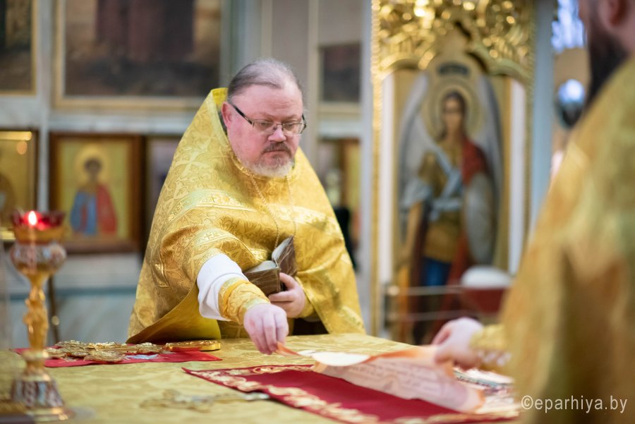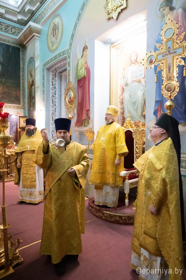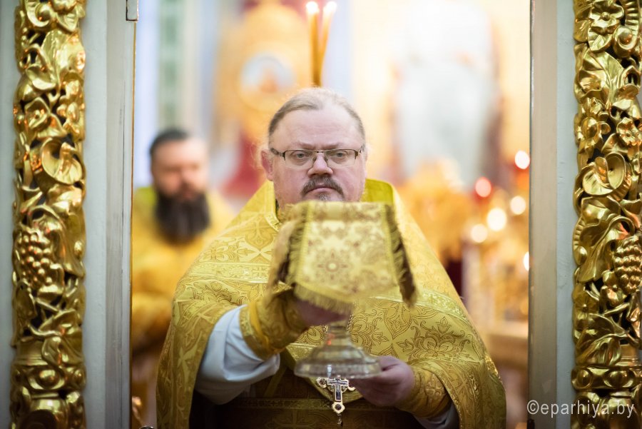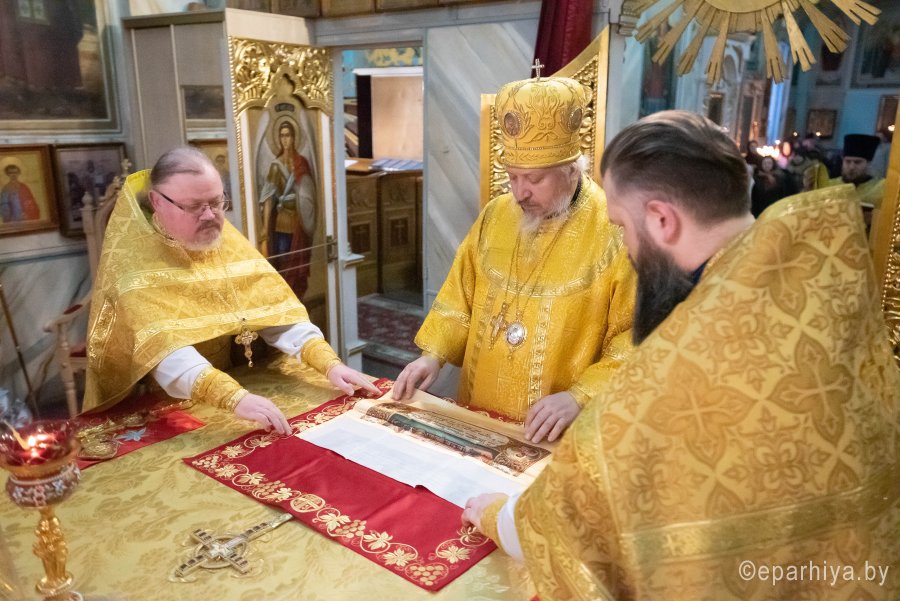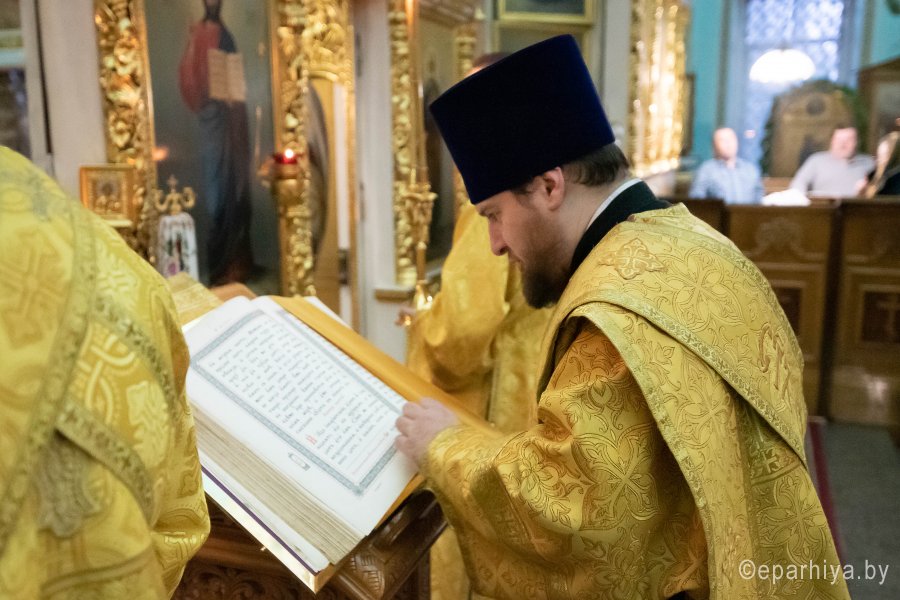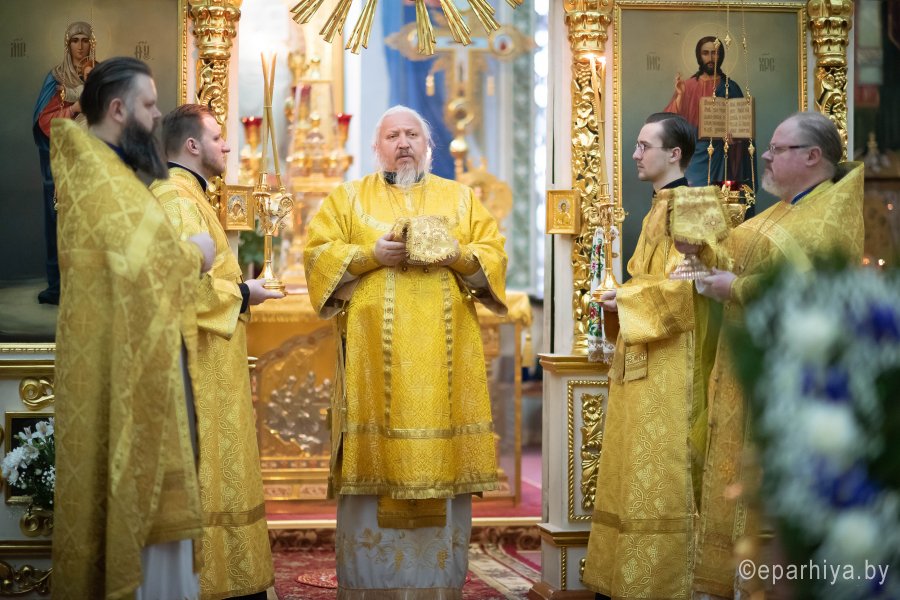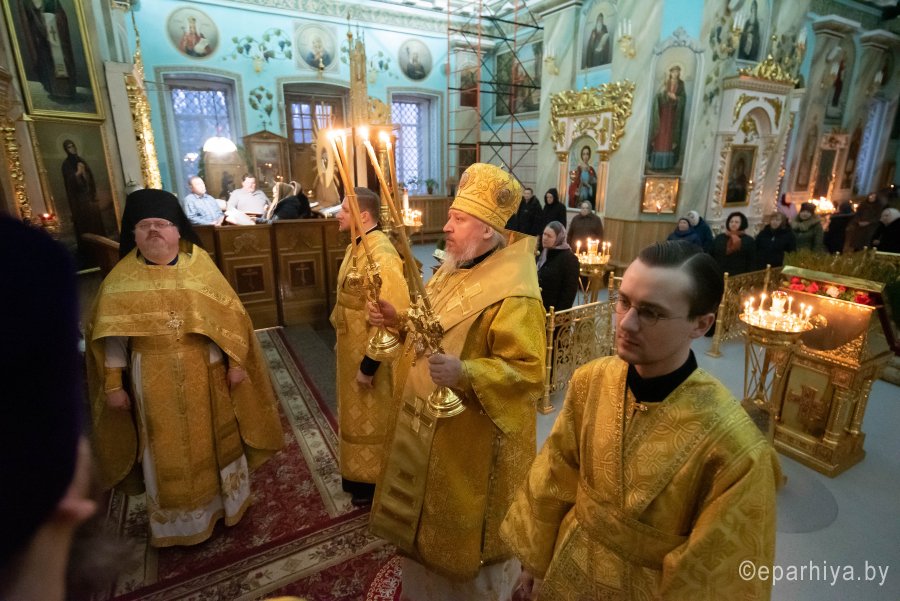Божественную литургию в предпразднство Сретения Господня 14 февраля 2020г., Высокопреосвященнейший Стефан, архиепископ Гомельский и Жлобинский, совершил в Петро-Павловском кафедральном соборе г.Гомеля в сослужении духовенства собора. По окончании Литургии Владыка Стефан поздравил причастников с принятием Святых Христовых Таин и обратился к молящимся со словами архипастырского назидания. |