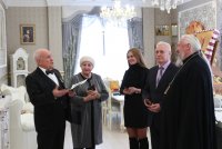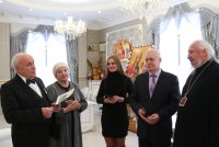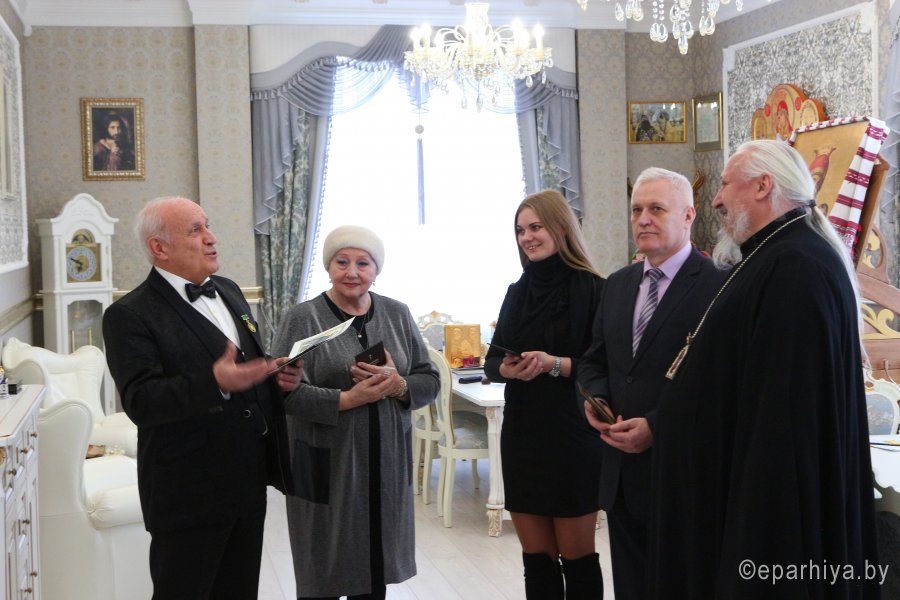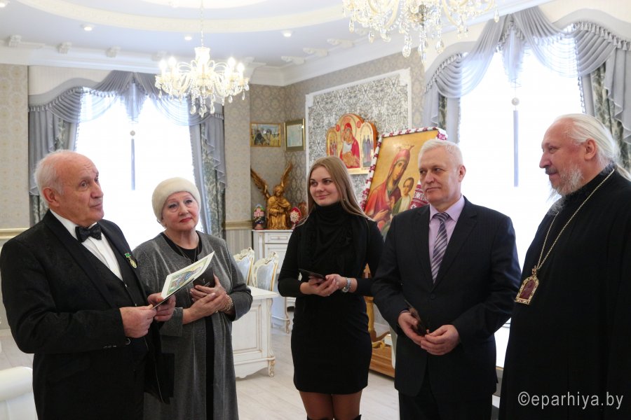 Высокопреосвященнейший Стефан, архиепископ Гомельский и Жлобинский, за многолетний и добросовестный труд и за понесенные труды во славу земли Гомельской удостоил медали святого праведного Иоанна Кормянского артиста драмы, ведущего мастера сцены Гомельского областного драматического театра Лавриновича Александра Сафроновича. Вручая награду, Высокопреосвященнейший владыка поблагодарил Александра Сафроновича за труды, понесенные на благо города и епархии и пожелал ему помощи Божией в предстоящих трудах. В ответном слове Александр Сафронович поблагодарил Владыку за высокую награду и, являясь уроженцем г. Слуцка, прочитал стихотворение собственного сочинения о своей землячке, святой праведной Софии Слуцкой. София Слуцкая, святая! Ограда наша и любовь. Тебя, молитвой поминая, Мы умоляем вновь и вновь. Спаси народ наш от напастий Из глубины минувших лет. И ниспошли здоровья, счастья, Оберегай от разных бед. Вселяй надежду в наши души. Гони тоску, болезни — прочь. С тобой Господь наш всемогущий, И с ним ты можешь нам помочь. София Слуцкая, святая! Не отверни от нас свой лик. Тебя, в молитвах воспевая, Мы просим Бога в этот миг. Спаси нас, Господи, помилуй, Продли земные наши дни, А мы Софии образ милый В душе навеки сохраним. |