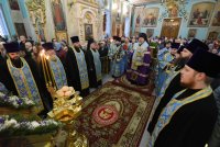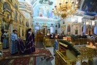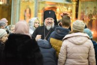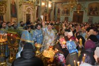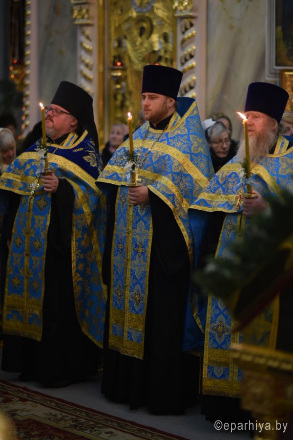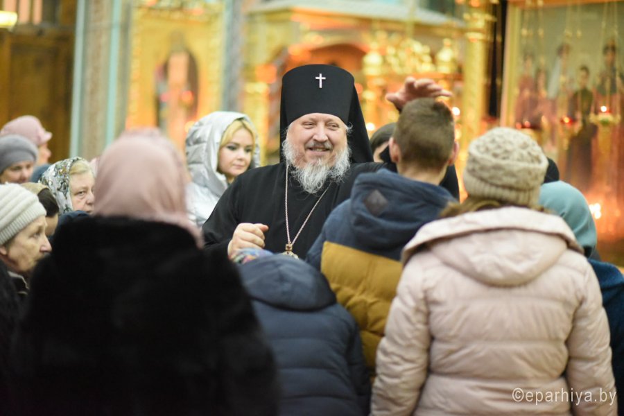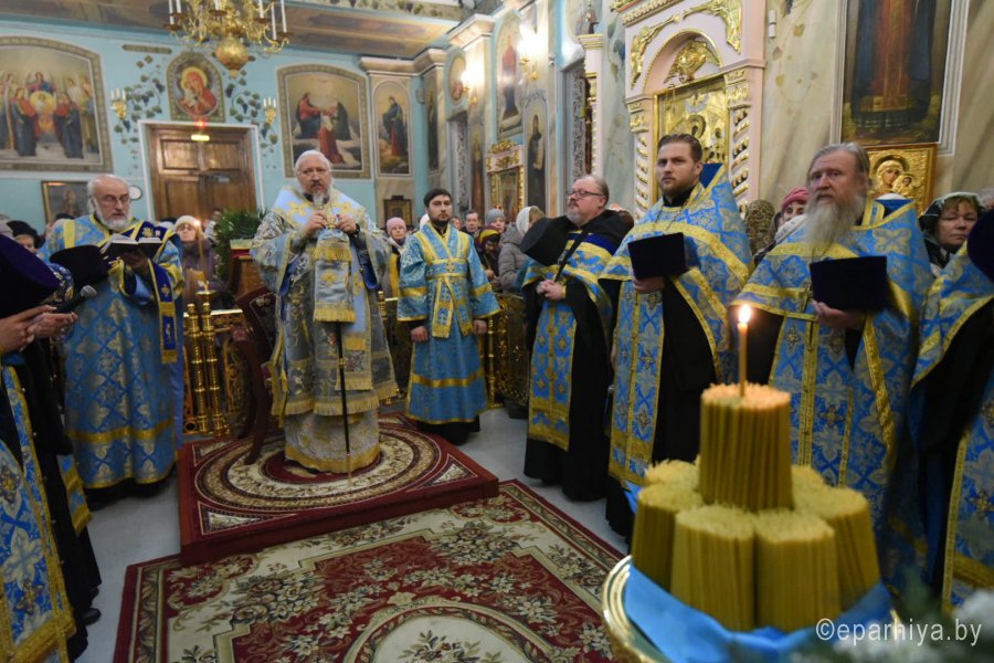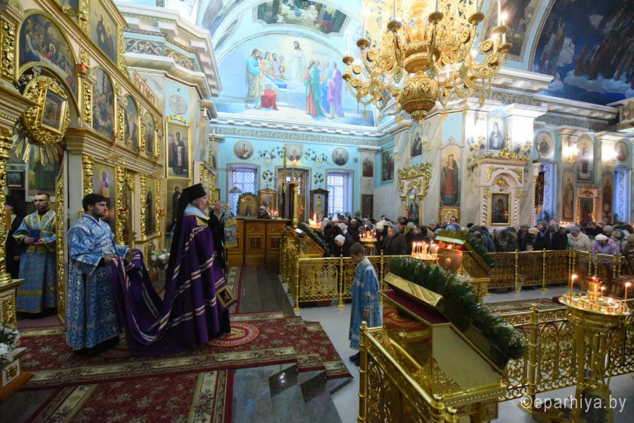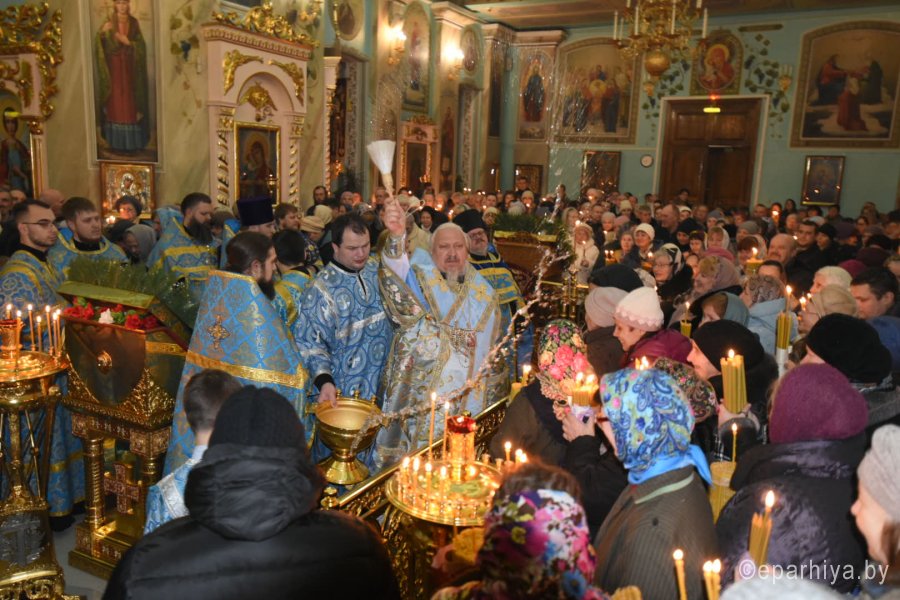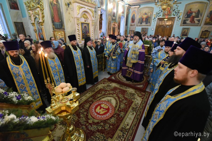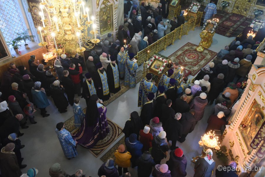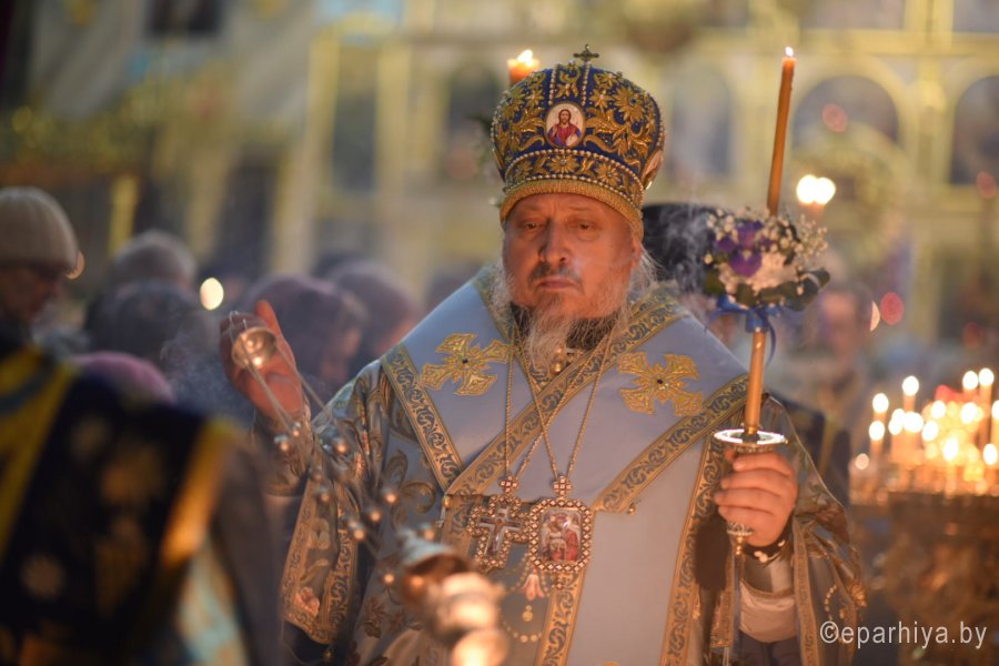 Всенощное бдение и уставные богослужения в канун праздника Сретения Господа Бога и Спаса нашего Иисуса Христа 14 февраля 2020г. Высокопреосвященнейший Стефан, архиепископ Гомельский и Жлобинский, совершил в Петро-Павловском кафедральном соборе г.Гомеля. Высокопреосвященнейшему сослужили: секретарь Гомельской епархии протоиерей Георгий Алампиев и духовенство собора. За богослужением Высокопреосвященнейший Стефан совершил чин освящения свечей, поздравил прихожан с праздником и обратился к молящимся со словами архипастырского назидания. |