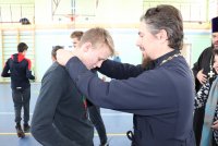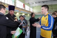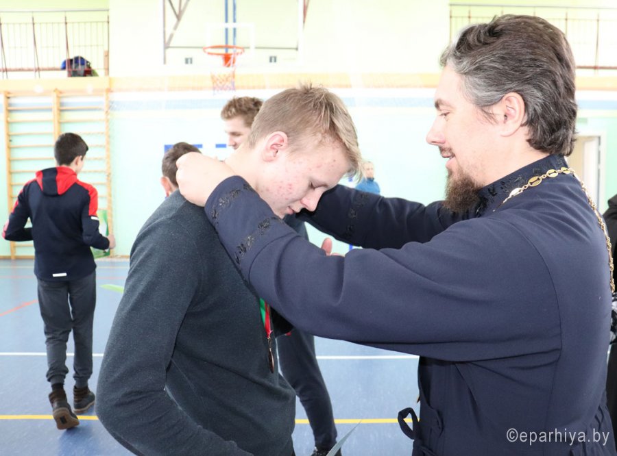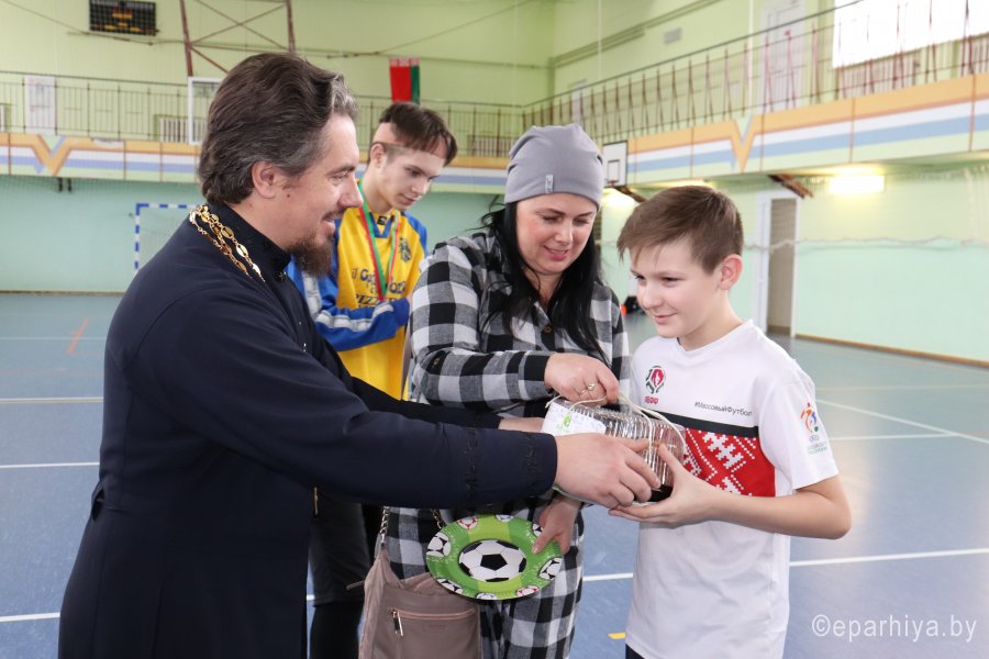 15 февраля на базе Чечерской детско-юношеской спортивной школы состоялся зональный турнир по мини-футболу на кубок Чечерского благочиния Гомельской епархии. В турнире приняли участие 4 команды Чечерского и Ветковского района. С приветственным словом к ребятам обратился клирик храма Преображения Господня г.Чечерска Василий Ковальчук. Он поздравил участников турнира с праздником Сретения Господня и Днем православной молодежи, пожелал участникам хорошей игры, задора и благословил на начало игры. В напряженной борьбе первое место одержала команда ГУО «Средняя школа №1г.Ветки имени А.А.Громыко», второе место заняла команда ГУО «Гимназия г.Чечерска», третье – ГУО «Средняя школа №2 г.Чечерска». После турнира ответственный по работе с молодежью Чечерского благочиния протоиерей Андрей Булацкий поблагодарил всех участников игры, пожелал им бодрости духа, здоровья и новых побед. Священнослужители приняли участие в церемонии награждения. Команда-победительница г.Ветки была награждена кубком, все участники, занявшие призовые места были награждены медалями и дипломами, команда, не вошедшая в состав победителей, получила утешительный сладкий приз – торт. Команда-победительница представит Чечерское благочиние на областном турнире на кубок Молодежного отдела Гомельской епархии. Пожелаем им победы!!! Материал предоставлен Чечерским благочинным округом |