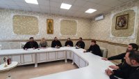 Чарговае пасяджэнне Каардынацыйнага савета пад старшынствам сакратара Гомельскай епархіі протаіерэя Георгія Алампіева адбылося ў будынку Гомельскага епархіяльнага ўпраўлення 21 лютага 2020г. У ходзе пасяджэння былі заслуханы справаздачы старшыняў аддзелаў, а таксама абмяркоўваліся планы работы на будучы час. |