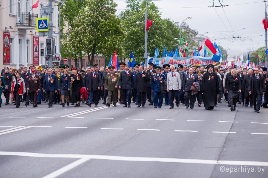 Высокопреосвященнейший Стефан в сопровождении секретаря Гомельской епархии протоиерея Георгия Алампиева совместно с первым заместителем председателя облисполкома Геннадием Соловьем, заместителем председателя облисполкома Владимиром Приваловым, председателем Гомельского городского исполнительного комитета Петром Кириченко и представителями областных и городских администраций принял участие в шествии, посвященном Дню Победы нашего народа над немецко-фашистскими захватчиками, прошедшем 9 мая 2019г.Встречая этот День Победы каждый из гомельчан и гостей города, шагающих по главной его магистрали, улице Советской, невольно возвращается мыслями в свое детство и юность.