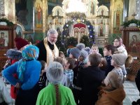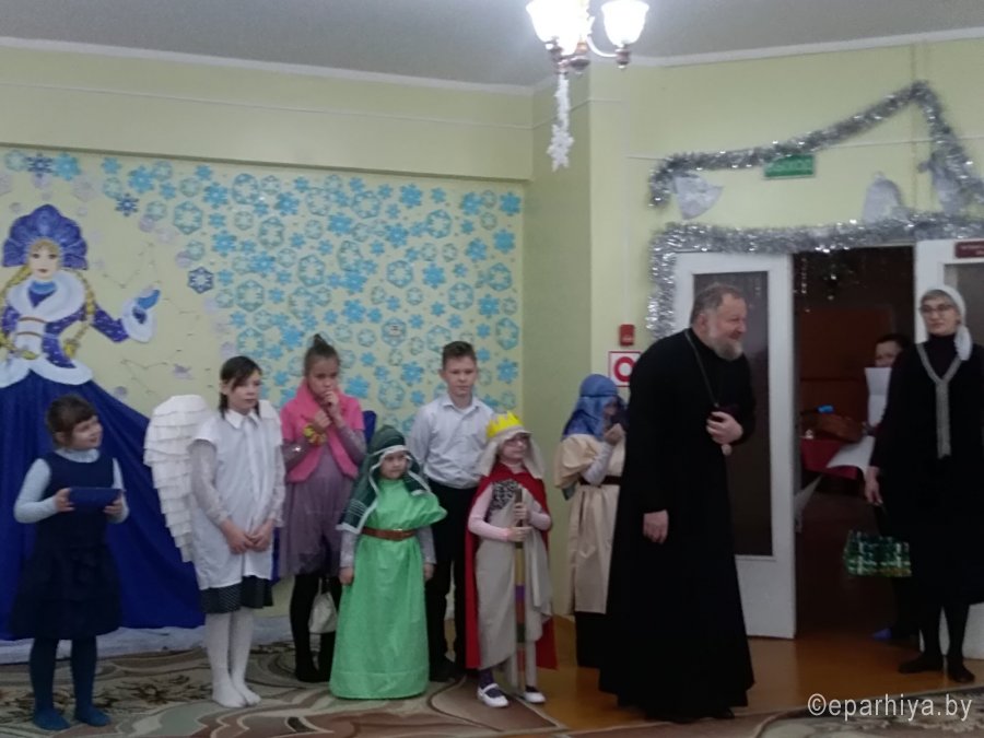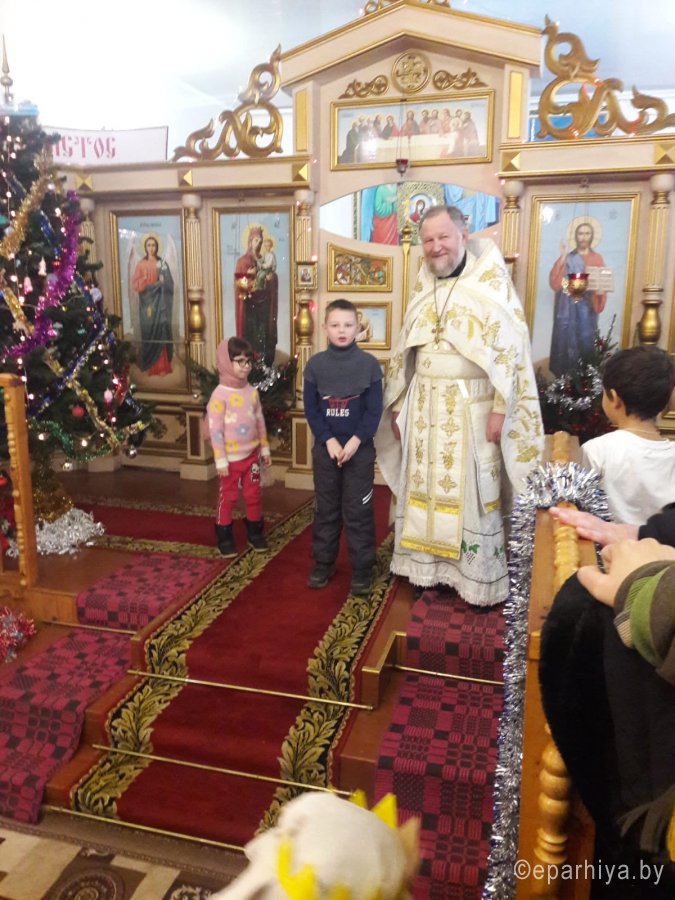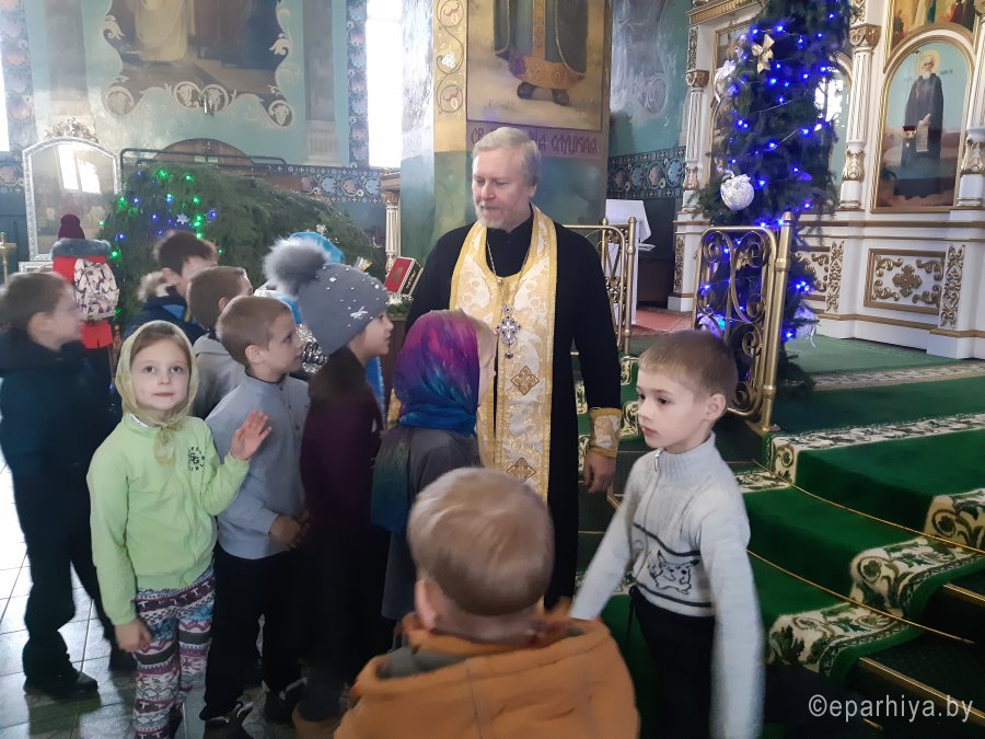 После божественной литургии в праздник Рождества Христова настоятель храма великомученика Георгия Победоносца аг. Лукский протоиерей Петр Гараев поздравил маленьких прихожан с праздником и подарил сладкие подарки. Дети воскресной школы приготовили библейские рождественские сценки. А 8 января с ребятами воскресной школы посетили ГУО «Лукский ясли-сад». Батюшка поздравил деток, рассказал историю праздника. Воспитанники воскресной школы показали библейские рождественские сценки. 7 января после литургии настоятель храма преподобного Серафима Саровского в г. Жлобине протоиерей Леонид Михайловский поздравил маленьких прихожан с праздником. А затем состоялся детский Рождественский утренник. Учитель воскресной школы Елена Ивановна Коваленко вместе с детьми подготовили Рождественскую постановку с песнями и стихотворениями. Также мамы юных артистов подготовили угощенье: испекли печенье и после праздника одарили зрителей. 9 января настоятель храма святителя Василия Великого в г. Жлобине иерей Вячеслав Рябица, в день памяти первомученика архидьякона Стефана побывал с поздравлением в УСЗ "Территориальный центр социального обслуживания населения". Священник поздравил присутствующих с праздником Рождества Христова, подарил икону Рождества, сладкие рождественские подарки. На зимних каникулах состоялась экскурсия в храм Святой Живоначальной Троицы в г. Жлобине. Ребята из школьного лагеря ГУО «Гимназия № 8 им. Козлова» наполнили храм своими голосами. Им было интересно все – от истории до устройства храма. Клирик храма протоиерей Павел Бондарчук особое внимание уделил рассказу о празднике Рождества Христова. В конце беседы ребята получили сладкие подарки. 10 января 2020г. состоялось рождественское мероприятие в УСЗ "Территориальный центр социального обслуживания населения" Жлобинского района. «Волшебство на Рождество» - так называлось благотворительное праздничное мероприятие для детей из малообеспеченных многодетных семей, детей, находящихся в социально-опасном положении, воспитывающихся родителями сиротской категории. В рамках акции «Наши дети» на праздник вместе с родителями было приглашено 62 ребенка. Протоиерей Павел Бондарчук, клирик храма Святой Живоначальной Троицы в г. Жлобине, поздравил всех с Новым годом и рассказал детям о Рождестве, одном из самых красивых и торжественных христианских праздников. Ребята кружили в хороводе, играли в игры и в конце праздника получили от спонсоров подарки. |