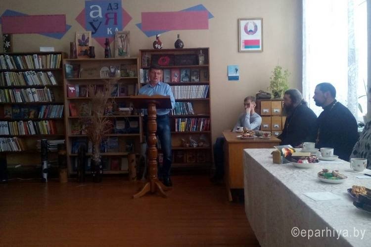 Поэтому 27 марта читатели клуба «Мудрость» библиотеки-филиала №14 собрались на очередное заседание, чтобы пообщаться в неформальной обстановке и познакомиться с новым клириком храма Грузинской иконы Божьей Матери в г.Гомеле иереем Николаем Барсуковым.