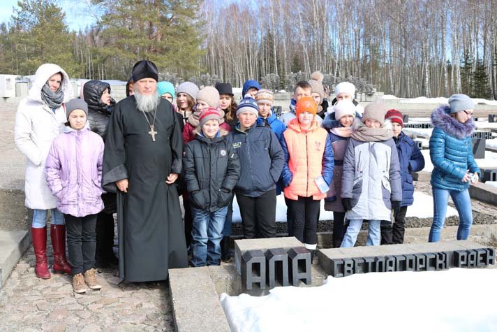Ребята вместе с архимандритом Алексием (Желенком) отдали дань памяти невинно убиенным.