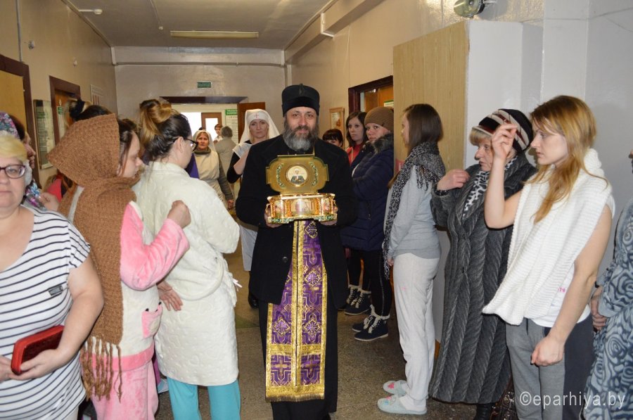Пациенты Центральной районной больницы г. Речицы воспользовались уникальной возможностью помолиться великой Святыне. Ковчег с частицой мощей блаженной старицы Матроны Московской 6 марта был доставлен для поклонения настоятелем храма Покрова Пресвятой Богородицы в г.Речица протоиереем Николаем Ефименко на территорию учреждения.В каждом отделении больницы с нетерпением ожидали святыню с надеждой, что молитвами к блаженной Матроне получат от Бога исцеление и помощь. Множество людей смогли поклониться мощам святой и попросить в своих молитвах её ходатайства перед Богом. Духовенство, сопровождавшее святыню поддержало молящихся молебном. Затем ковчег с частицей был доставлен в палаты к тем, кто не смог подойти самостоятельно. Протоиерей Николай Ефименко пожелал пациентам больницы скорейшего выздоровления.