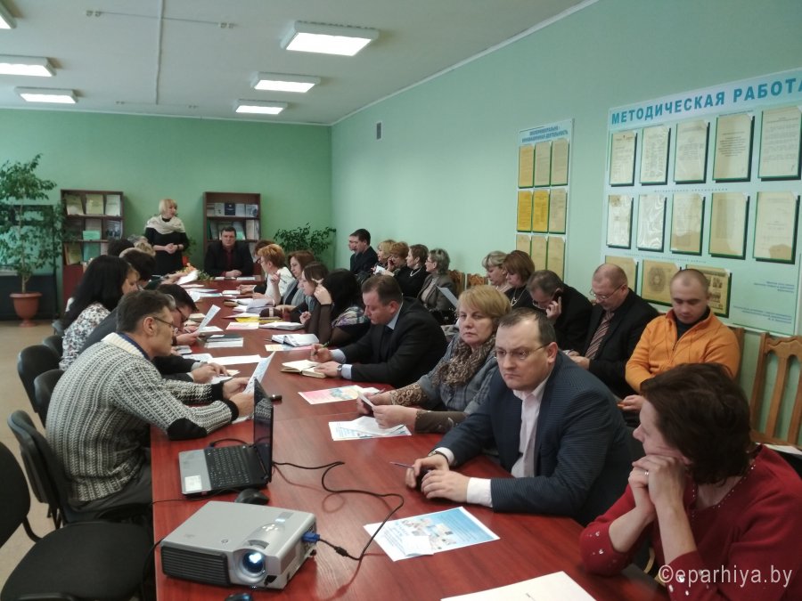 В стенах Гомельского государственного профессионально-технического колледжа машиностроения состоялась рабочая встреча председателя отдела религиозного образования и катехизации Гомельской епархии протоиерея Артемия Кривицкого с руководителями учреждений образования и директорами профессионально-технического и средне-специального образования Железнодорожного района г. Гомеля с участием начальника отдела образования, спорта и туризма администрации района И.Р. Казимировой.В ходе встречи обсуждались формы сотрудничества и дальнейшего взаимодействия учреждений образования и Гомельской епархии в сфере духовно-нравственного воспитания подрастающего поколения. Священнослужитель сделан анонс предстоящих мероприятий отдела религиозного образования и катехизации на 2018 год, в том числе затронув вопросы проведения в марте месяце среди старшеклассников городского интеллектуального турнира «Фавор», затем рассказал о предстоящей областной олимпиаде по основам православной культуры. Тематика олимпиады, которая будет проходить традиционно в два этапа в апреле – мае нынешнего года, будет посвящена 220-летию со дня рождения и 150-летию со дня блаженной кончины митрополита Литовского и Виленского Иосифа (Семашко) и будет затрагивать, помимо прочего, вопросы из Ветхого и Нового Завета и вопросы устройства православного храма. Далее состоялась презентация культурологической экскурсии по храмам г.Гомеля и выставки «Человеческий потенциал Беларуси».