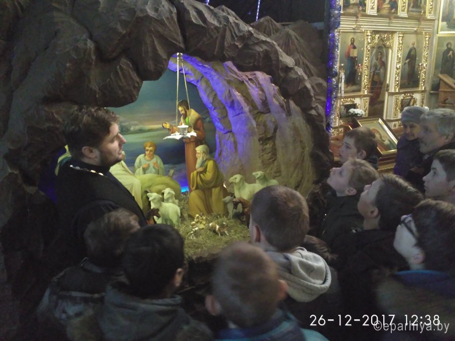 Светлый праздник Рождества Христова отметили 17 января 2018г. в ГУО «Ясли-сад №125 г.Гомеля», который на протяжении многих лет является инновационной площадкой по духовно-нравственному воспитанию на православных традициях белорусского народа. Ребята представили гостям праздника и родителям Рождественский спектакль, наполнили весь зал теплотой и радостью.На праздник были приглашены председатель отдела религиозного образования и катехизации Гомельской епархии протоиерей Артемий Кривицкий, настоятель прихода храма святого праведного Иоанна Кормянского иерей Дмитрий Жданов, координатор отдела по связям с общественностью Гомельской епархии, Н.С.Жгирова, старший преподаватель кафедры общей и коррекционной педагогики Гомельского областного института развития образования, Т.А.Хорик.