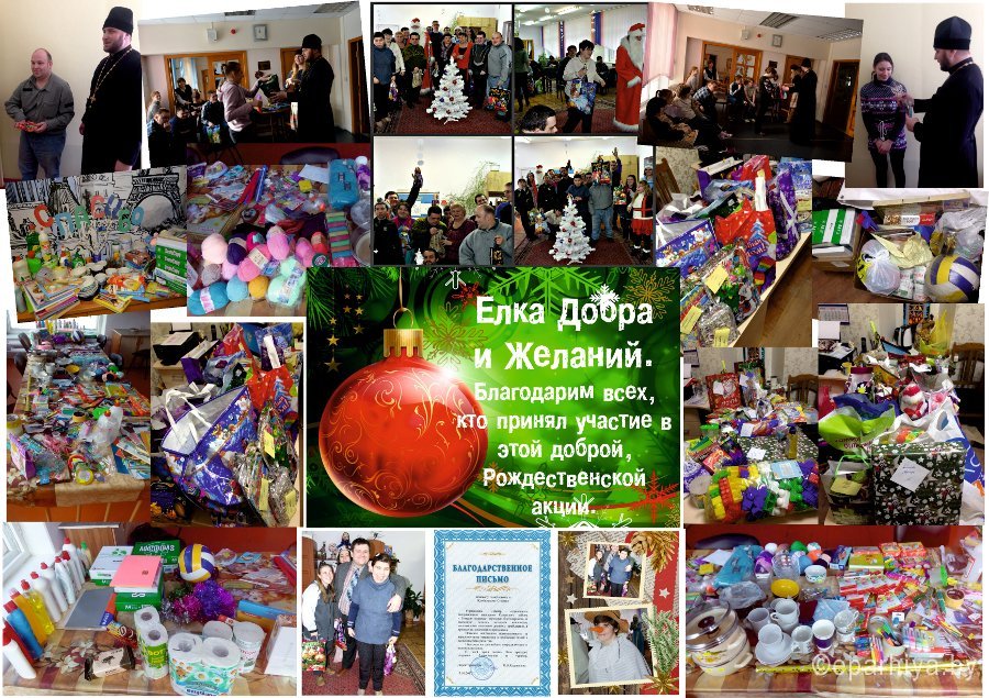 Вот и закончились Новогодние и Рождественские праздники и вместе с ними, завершила свое действие акция "Елка Добра и Желаний", которая проходила на территории Свято-Петро-Павловского кафедрального собора с 23 декабря 2016 года по 14 января 2017 года и была направлена на помощь молодым инвалидам, посещающих отделение дневного пребывания "Центр социального обслуживания населения Советского района г.Гомеля" и отделение дневного и круглосуточного пребывания детей-инвалидов и молодых инвалидов «Майский цветок», учреждения «Территориальный центр социального обслуживания населения Железнодорожного района г. Гомеля».Искренно благодарим всех, кто принял участие в этой доброй акции и не остался равнодушным. Ведь благодаря Вам многие ребята получили именные подарки к Новому году и Рождеству. А все остальные подарки были вручены двум центрам дневного пребывания детей-инвалидов и молодых инвалидов г.Гомеля.