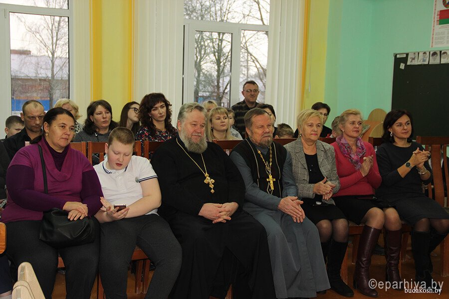 На мероприятие были приглашены почётные гости: благочинный Светлогорского округа протоиерей Александр Кисель, заведующий учебно-методическим кабинетом отдела образования Светлогорского райисполкома Людмила Ивановна Роговцова, председатель Светлогорской районной организации белорусского общества «Красный крест» Татьяна Анатольевна Акулич.