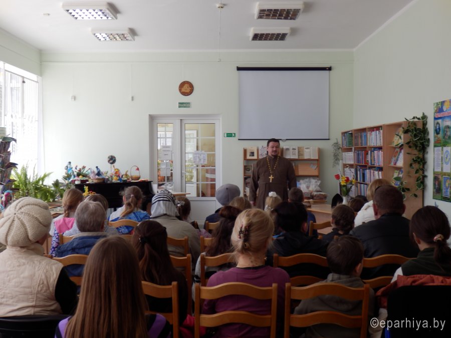 По благословению Преосвященнейшего Стефана, епископа Гомельского и Жлобинского 20 апреля 2017 года в четверг Светлой седмицы Отделом социального служения и церковной благотворительности епархии вместе с библиотекой-филиалом №1 им. И.Мележа ГУ «Сеть публичных библиотек г.Гомеля» и совместно с учреждением «Гомельский городской центр социального обслуживания семьи и детей» подведены итоги выставки-конкурса семейного творчества «Пасхальная радость». В выставке-конкурсе приняли участие 113 человек. Среди творческих поделок семейные работы, детские, работы творческих женщин пенсионного возраста. Были представлены вышивка икон взрослыми и детьми, рисунки, бисероплетение и другие техники исполнения. Протоиерей Александр Цуканов, клирик храма Преображения Господня в г.Гомеле вручил всем взрослым участницам и молодым участникам, чьи работы были отмечены, как творческие и оригинальные, иконы. Всем детям-участникам были вручены молитвословы, детские книги и другие церковные подарки. Вручение проходило после просмотра праздничного концерта в честь праздника ПАСХИ в здании библиотеки им. И.Мележа. Организатор выставки, библиотекарь Елена Михайловна Гордеева при подведении итогов отметила: «Убеждена, что эта выставка, которая проводится уже четвертый год, востребована людьми. И это является стимулом для дальнейшего сотрудничества». Необходимо отметить, что конкурс-выставка семейного творчества «Пасхальная радость» показал много интересных, эстетических работ семейного и детского творчества.
