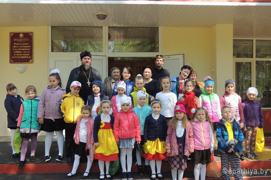 4 мая 2017 года настоятель прихода храма святого благоверного князя Александра Невского в г.Гомеле протоиерей Владимир Силенко посетил дом-интернат для ветеранов войны, труда и инвалидов «Васильевка», в актовом зале которого прошло театрализованное представление «Пасхальный колобок».Открывая праздничную программу, священник поздравил присутствующих с праздником Светлого Христова Воскресения, пожелав всем помощи Божией, телесной и духовной крепости, а также мира, согласия и радости.