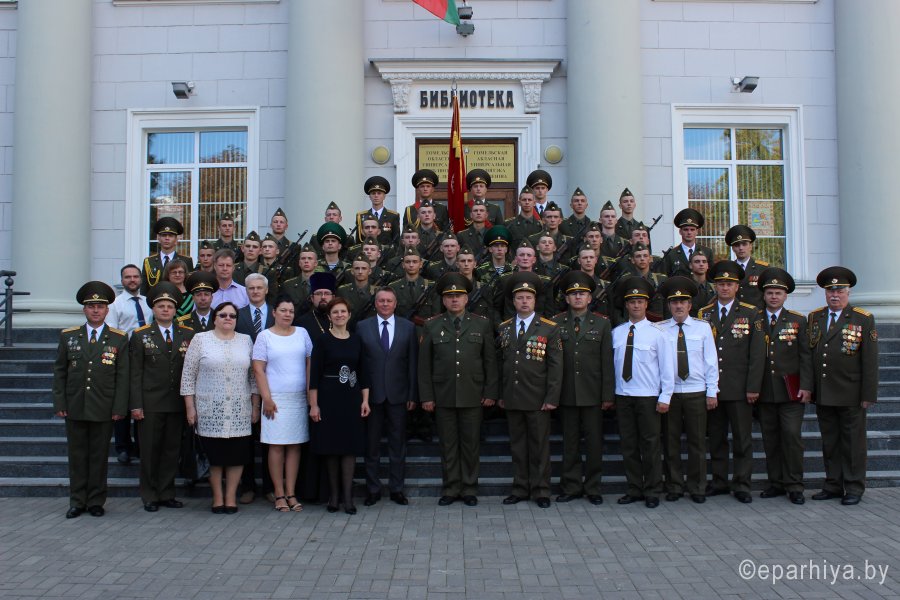 С торжественным событием юных военнослужащих поздравили: начальник Департамента транспортного обеспечения Министерства обороны Республики Беларусь полковник Шаплавский Ю.И., ректор университета доктор физико-математических наук Кулаженко Ю.И., начальник направления идеологической работы и социальной защиты Гомельского областного военного комиссариата Гомельской области полковник Гончаров Г.В., начальник отдела идеологической работы, культуры и по делам молодежи Администрации Железнодорожного района г. Гомеля Дроботова И.И., представители городских, силовых структур и общественных объединений.