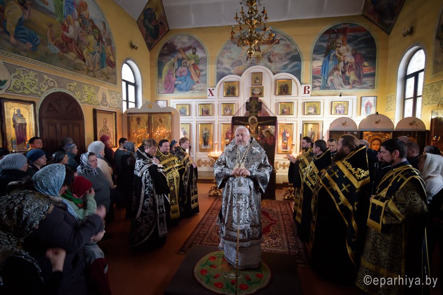 Божественную литургию Преждеосвященных Даров в праздник Козельщанской иконы Божией Матери 6 марта 2018г. Высокопреосвященнейший Стефан, архиепископ Гомельский и Жлобинский совершил в Свято-Никольском мужском монастыре г.Гомеля.Высокопреосвященнейшему сослужили: секретарь Гомельской епархии протоиерей Георгий Алампиев, духовник Гомельской епархии протоиерей Стефан Гладыщук, наместник Свято-Никольского мужского монастыря архимандрит Амвросий (Шевцов), председатель отдела по архитектуре и строительству протоиерей Георгий Тур, эконом Гомельской епархии протоиерей Владимир Масалитин, председатель отдела по социальному служению протоиерей Владимир Силенко, председатель информационного отдела Гомельской епархии протоиерей Олег Кострома, благочинный Гомельского районного округа протоиерей Артемий Кривицкий, духовенство епархии и братия монастыря в священном сане.