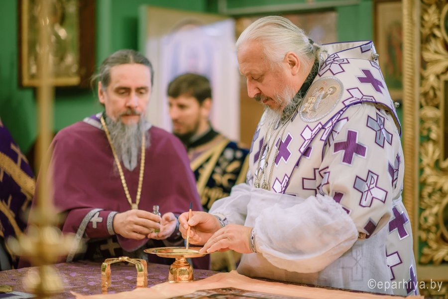 Божественную литургию в четверг 15-й седмицы по Пятидесятнице, в Предпразднство Воздвижения Честного и Животворящего Креста Господня в храме святого великомученика Георгия Победоносца в г. Гомеле 26 сентября 2019г. совершил Высокопреосвященный Стефан, архиепископ Гомельский и Жлобинский.Высокопреосвященному сослужили: секретарь Гомельской епархии протоиерей Георгий Алампиев, духовник Гомельской епархии протоиерей Стефан Гладыщук, настоятель прихода протоиерей Дмитрий Гончаров и духовенство епархии.
